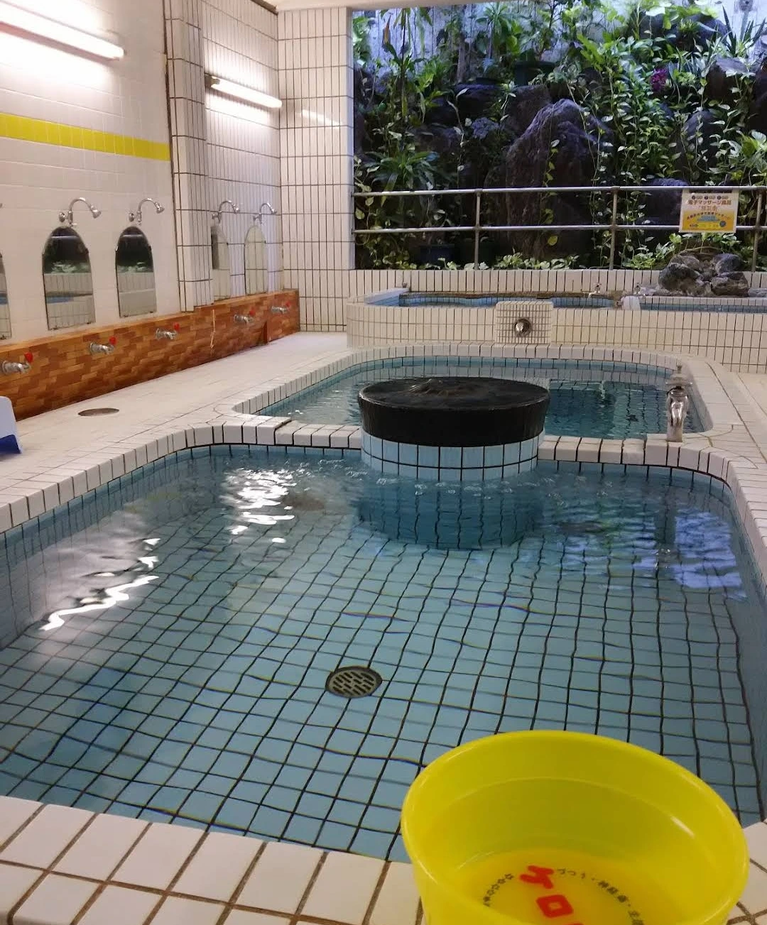 욕탕과 아열대 정원이 자연스레 어울리는 어느 목욕탕 전경