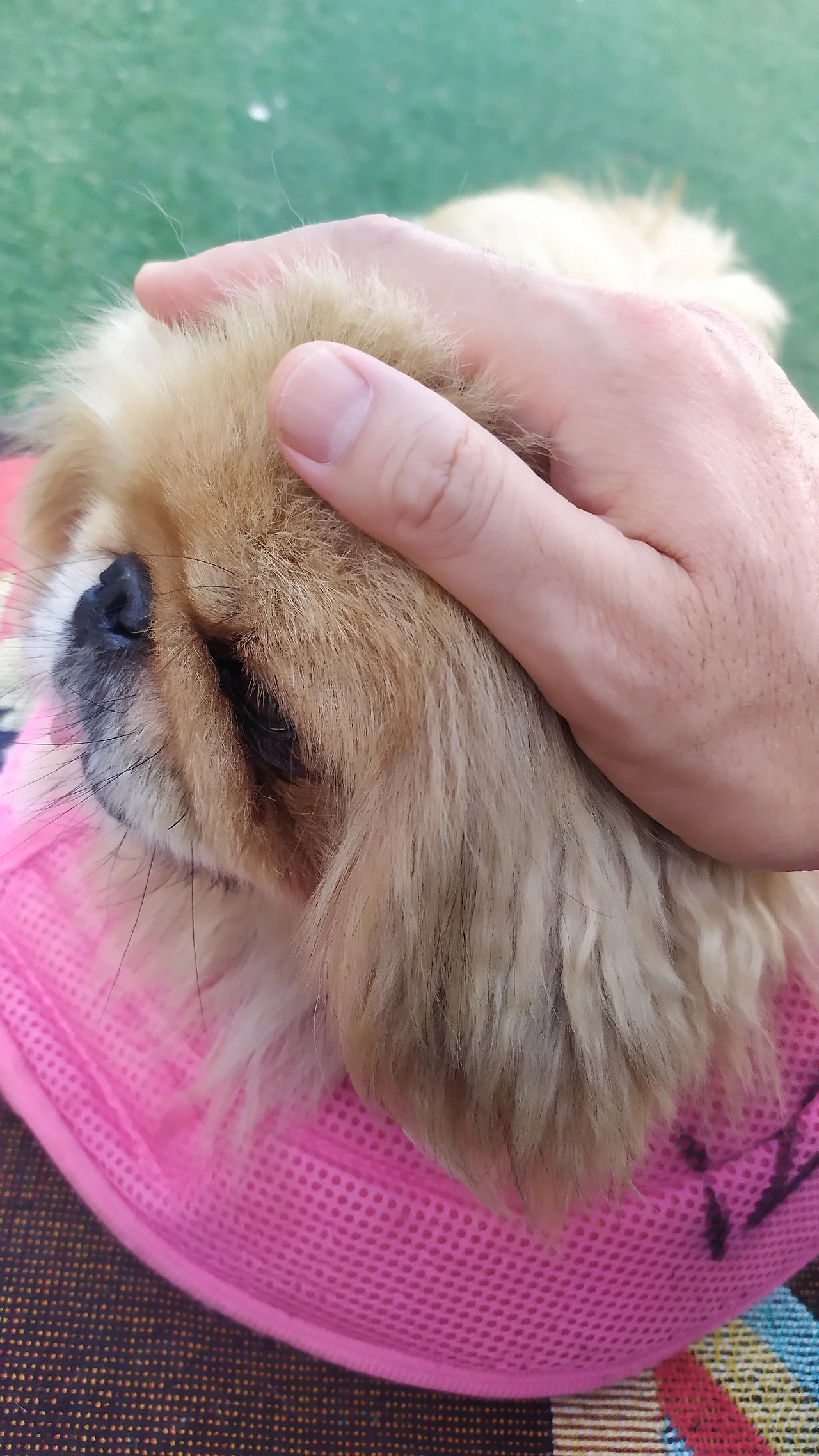 하나뿐인 멍뭉이, 몽찌. 불쌍하게도 간식 금지 깔때기를 두르고 있다.