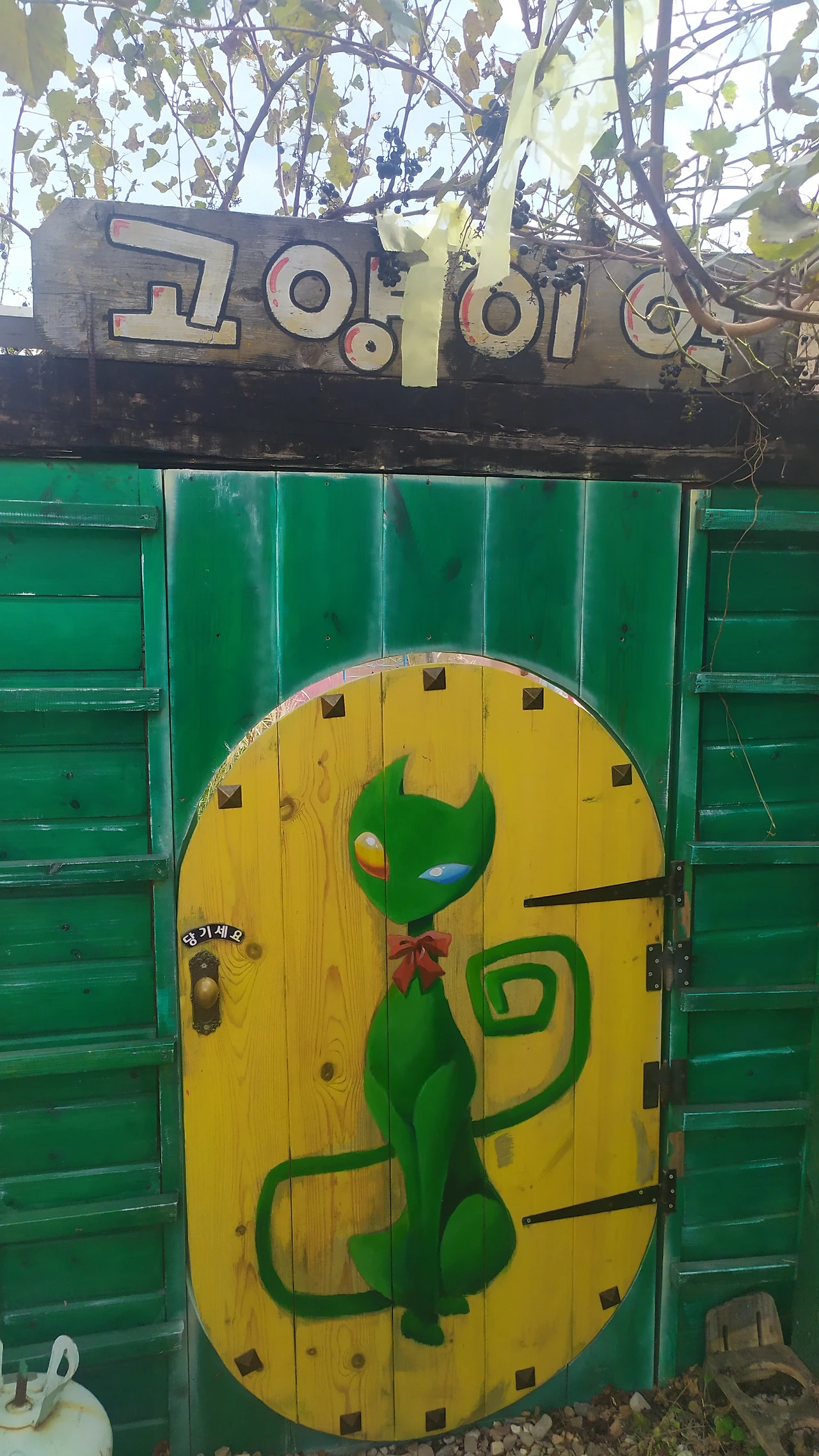 솔과 연은 아쉬운 감정이 역력했지만, 다음을 기약하며 자리에서 일어났다. 영흥도 앞바다는 밀물 때가 되었는지 성마른 갯벌이 확연히 줄어들었다. 카페 정문에 그려진, 리본을 두른 초록 외계 고양이에게 다음에 보자! 인사를 하고 집으로 돌아왔다.