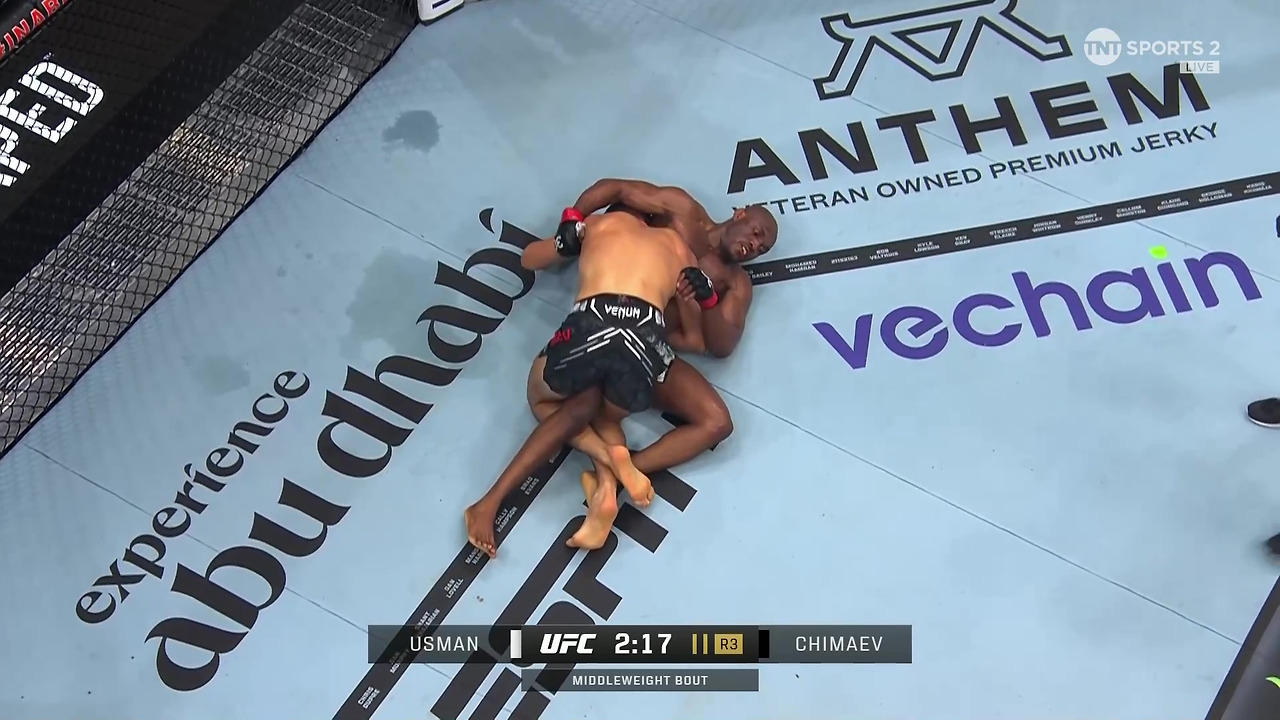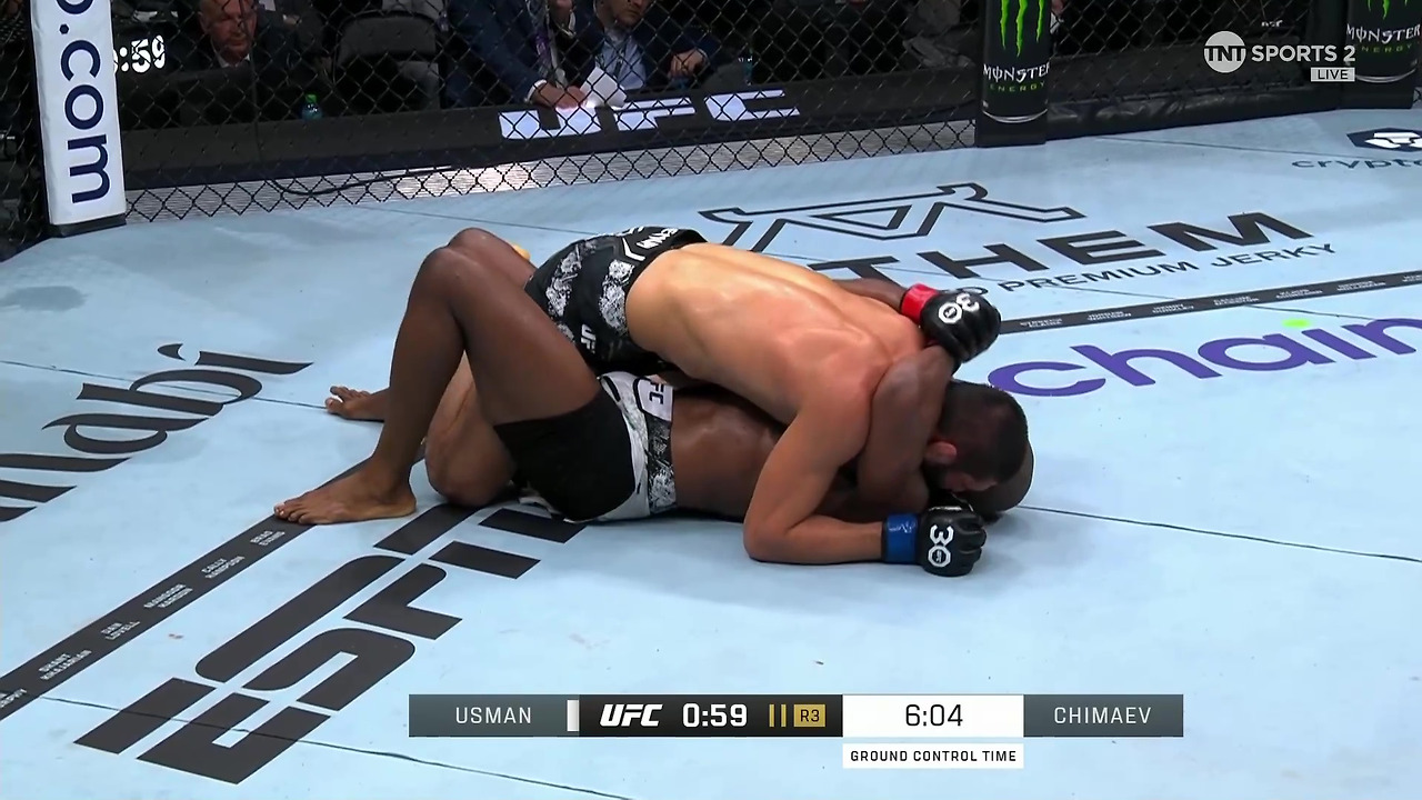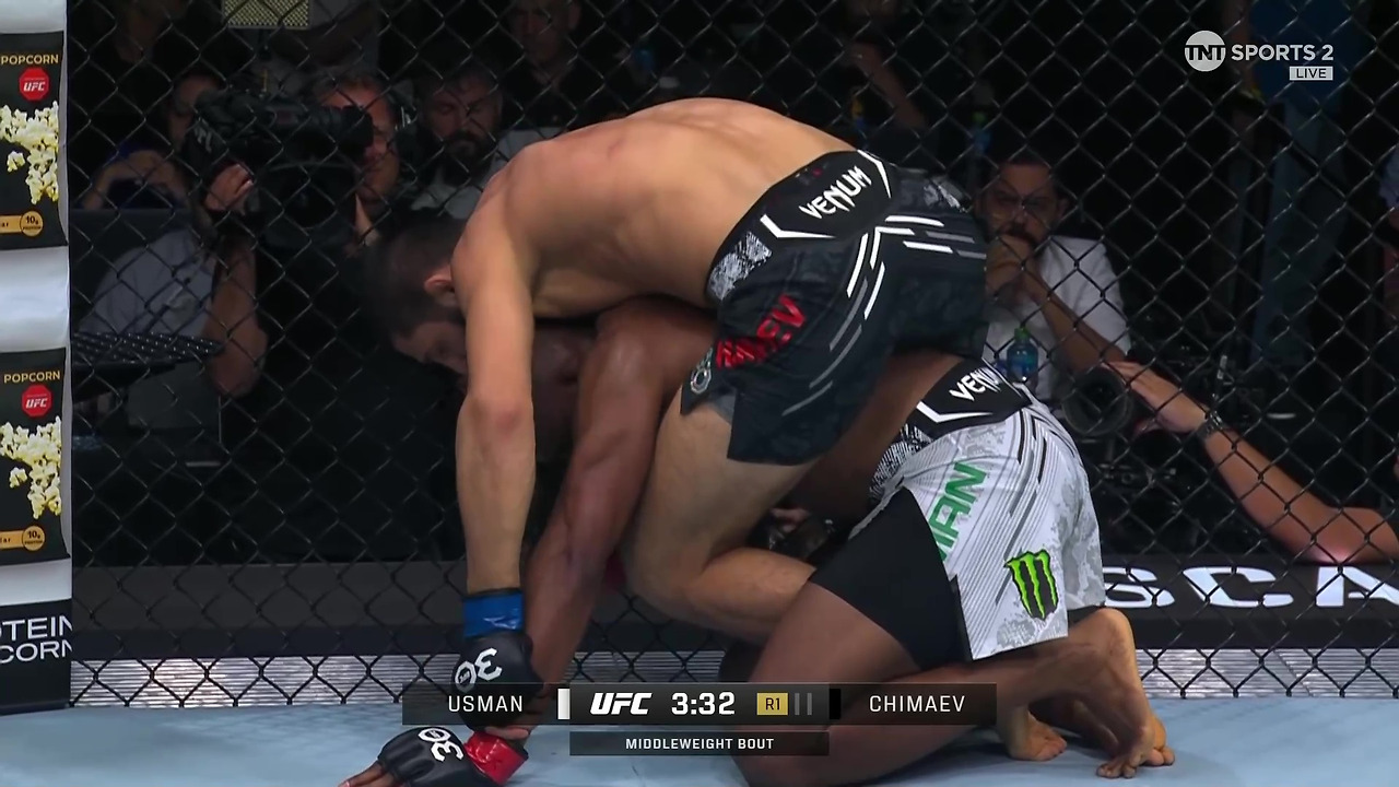 3라운드에도 그라운드를 장악하는 치마예프. 우스만은 그의 아귀에서 풀려나지 못했다