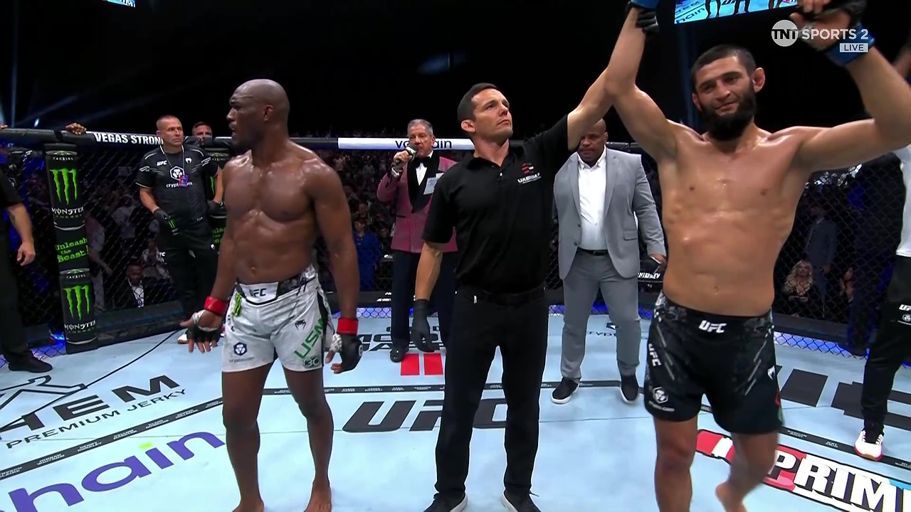 라운드 시작부터 두 선수의 신경은 날카롭다. 옥타곤 양 코너에서 잔뜩 몸을 웅크리다가 종이 울리자 서로를 향해 튀어나오는 선수들. 1라운드 초반, 힘겨루기를 하다가 치마예프가 우스만의 뒤를 잡더니 그라운드로 끌고 갔다. 스웨덴에서 펼쳐진 세계 레슬링 자유형 대회 챔피언 다운 그래플링 실력이다. 우스만은 뒤에서 압박하는 상대의 손아귀에서 벗어나려 안간힘을 쓰지만, 첫 라운드가 끝날 때까지 치마예프의 사슬에서 풀려나지 못했다. 간신히 일어서서 그를 바닥에 내동댕이 쳤지만, 치마예프는 우스만의 허리를 꼬아 가둔 양다리를 끝내 풀지 않았다. 계속해서 우스만의 목을 노려 기요틴 기술을 시전하는 치마예프는 집요하기 그지없는, 시베리아의 굶주린 늑대를 닮았다. 이어지는 라운드에서 치마예프는 초반과 같은 적극적인 서브미션과 그라운드 기술을 선보이지는 않았다. 우스만은 거리를 좁혀 적극적인 타격전을 벌여야 했건만, 이전과 달리 소극적인 경기 운영으로 상대를 겁박하지 못했다. 3라운드 마지막 10여 초를 남기고, 때늦은 난타전을 벌이는 것으로 만족해야 했다. 우스만은 충분한 사전 준비 없이 대타 선수로 나서면서, 동시에 미들급 월장을 위해 덩치를 키운 것이 독이 된 것처럼 보였다. 평소와 달리 그는 독기가 부족했고, 상대를 펜스로 밀어붙이고자 하는 열의가 부족했다. 이 상태로는 5라운드까지 장기전으로 끌고 가봤자 아무 득이 없을 경기 내용이다. 3라운드를 마치고 이어진 심판 판정은 역시나.. 함자트 치마예프의 손을 들어주었다. 치마예프는 경기 후 인터뷰에서 1라운드에서 우스만의 등에 업힌 채, 바닥에 떨어지면서 오른손 골절상을 입었다고 고백했다. 어쩐지 이후부터 우스만의 틈을 노려 테이크다운 시도를 하지 않더라니.. 그럼에도 부상을 입은 오른손을 아끼지 않으면서, 한치의 물러섬 없이 강자를 상대하며 승리를 거둔 것에 아낌없는 찬사를 보낸다. 이로써 치마예프의 연승 기록은 7승으로 늘어났다. 우스만은 체면을 단단히 구겼고, 어쩌면 파운드 포 파운드 순위는 아래로 내려갈지 모르겠다. 그는 절치부심하여 컨디션을 최상으로 끌어올리고 다음 매치를 준비할 필요가 있다.
