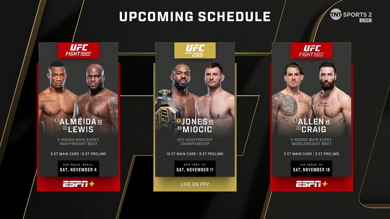 UFC 294는 이렇게 끝이 났다. 다소 심심하고 미적지근한 매치였다고 평하고 싶다. 오는 11월 12일에 펼쳐지는 UFC 295는 파운드 포 파운드 1위, 격투기의 천재이자 난봉꾼, 헤비급 챔피언 '존 존스'가 출격한다. 라이트 헤비급으로 판을 바꾼 '알렉스 페레이라'도 결의를 다진다. 두 선수가 어떤 현란한 기술로 상대를 제압할지 또는 쇼킹한 업셋으로 패배를 당할지 모두 지켜보기로 하자.