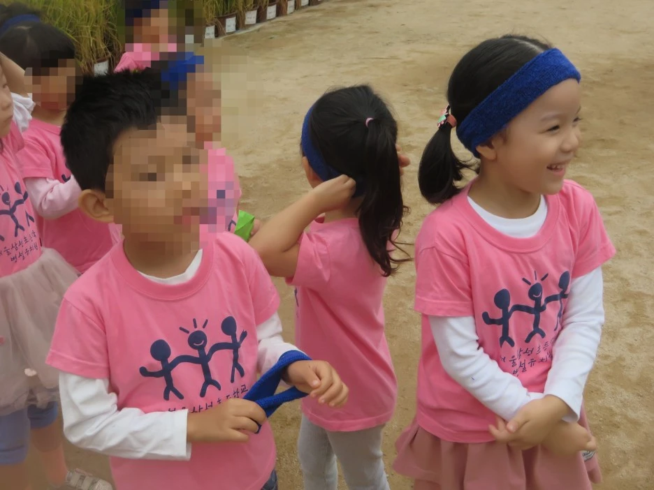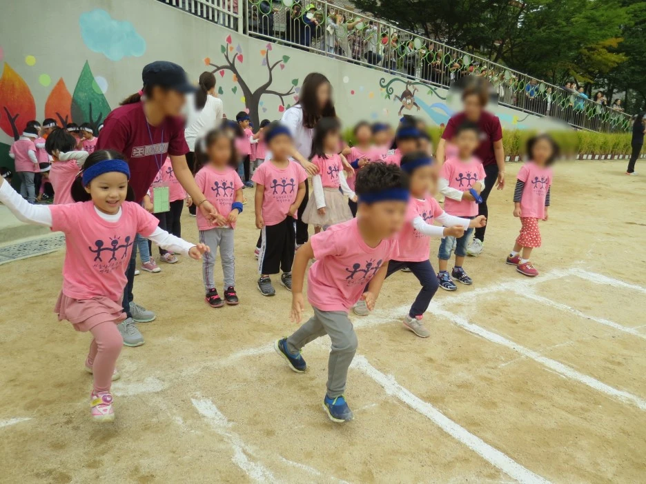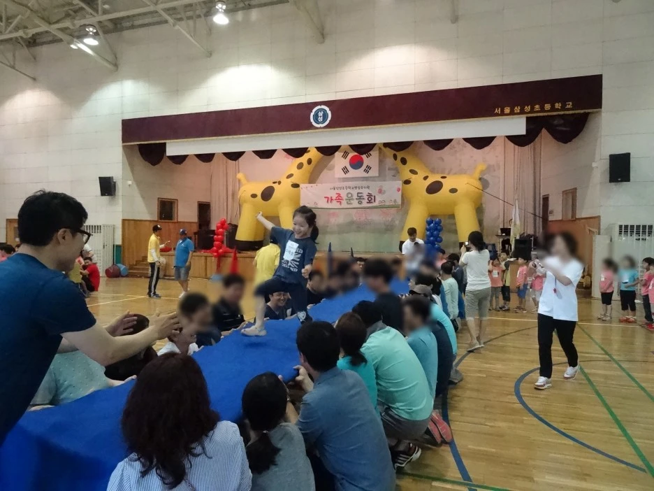 형식적인 국민의례와 개회사가 끝나고, 운동회가 시작된다. 기다란 푸른 천을 펼쳐 엄마, 아빠들이 양쪽에서 맞당겨 붙잡고, 그 위를 아이들이 재빠르게 달려서 지나간다. 짓궂은 아이들은 일부러 넘어져서는 엉금엉금 기어가다가, 천 자락을 붙잡은 엄마를 알아보고 매달리는 해프닝도 종종 벌어졌다. 읍내 오일장이 들어선 것처럼 어수선하고 북적대는 분위기지만, 아이들의 안전을 위해 나름 질서가 유지된다.