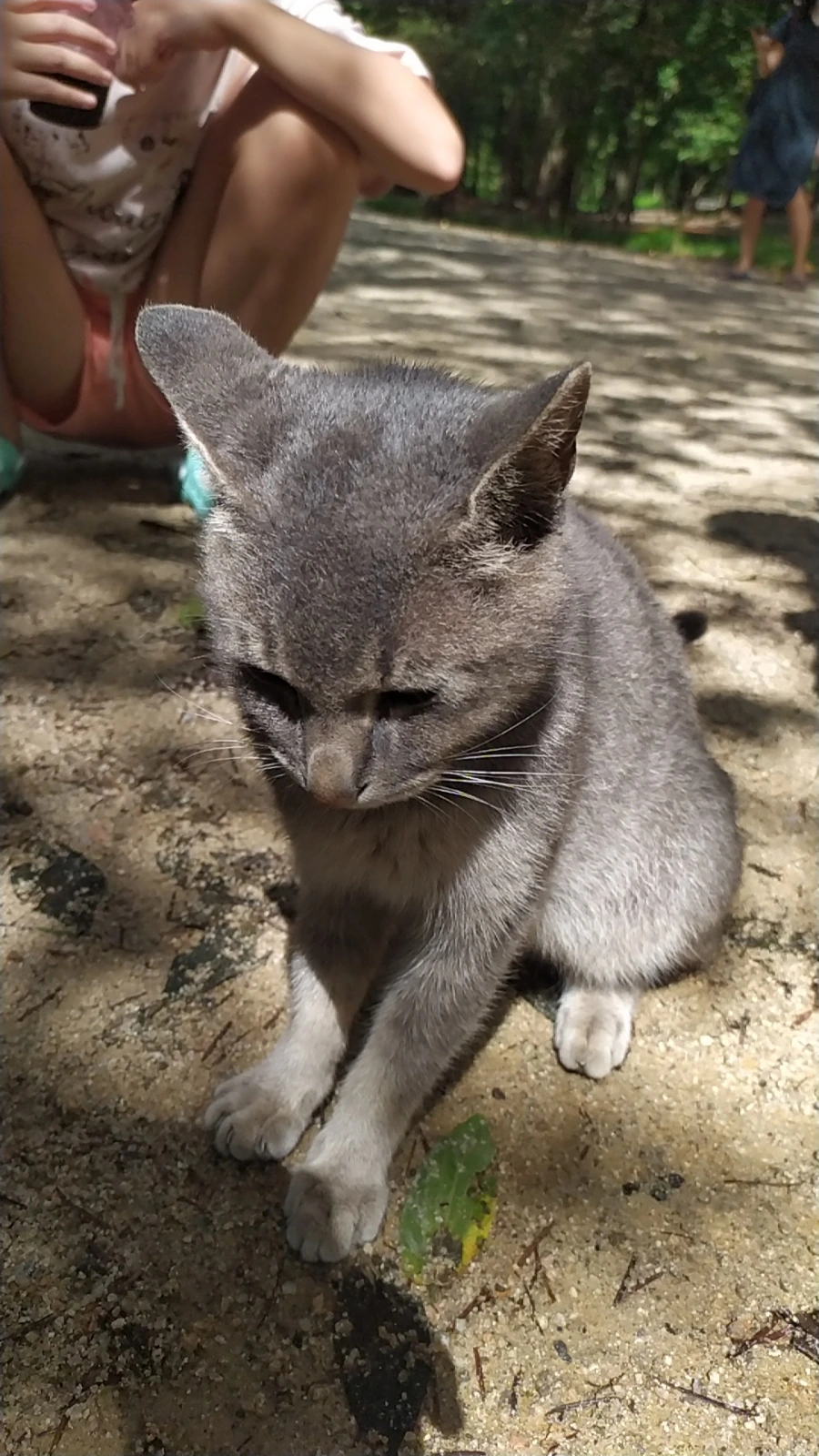 다소곳이 고개를 숙이고 아이들과 교감하는 러시안 블루 냥이.. 내소사 초입에서 우연히 마주쳤다