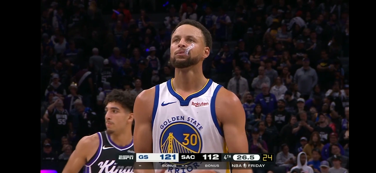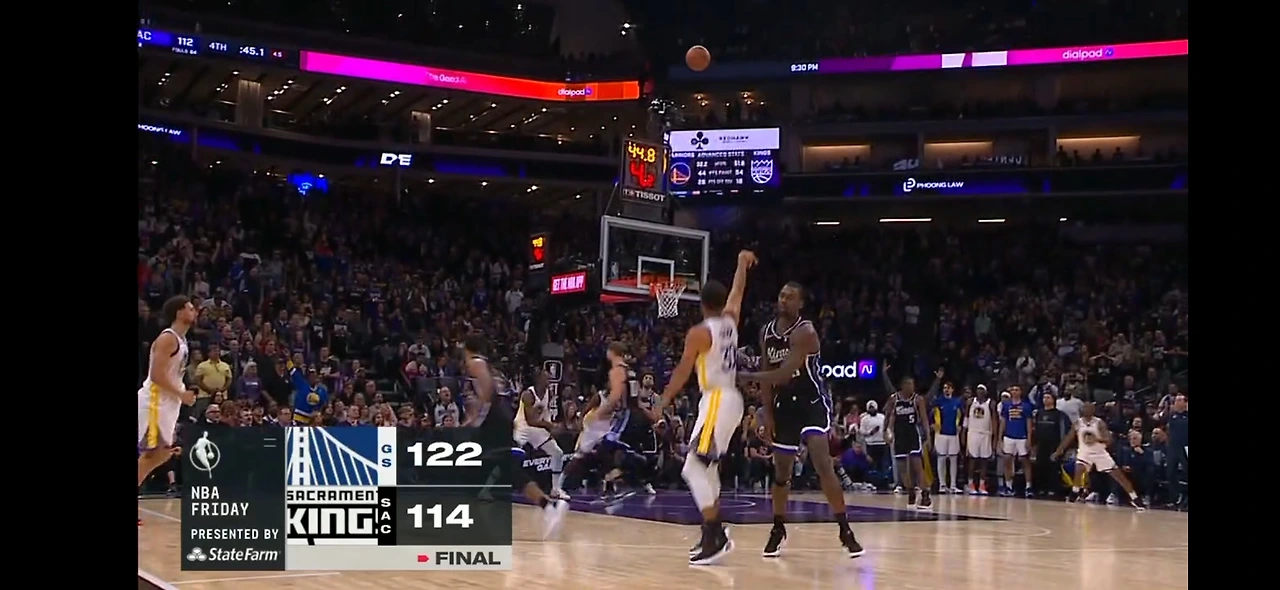 4 쿼터 막판, 승부를 결정짓는 커리의 정확한 3점 슛.. 킹스는 또 한 번 고개를 숙일 수밖에 없었다.
