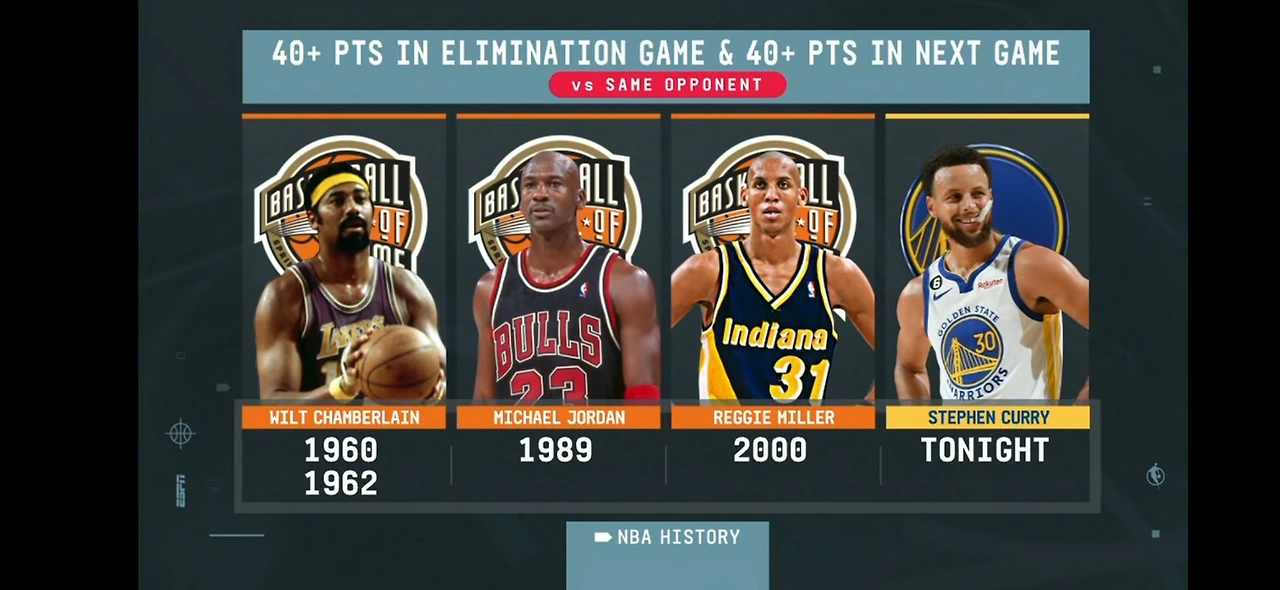 플레이 오프 7차전 그리고 다음 경기에서 40점 이상 득점한 쟁쟁한 선수들, 커리는 오늘 경기에서 기록을 작성했다.