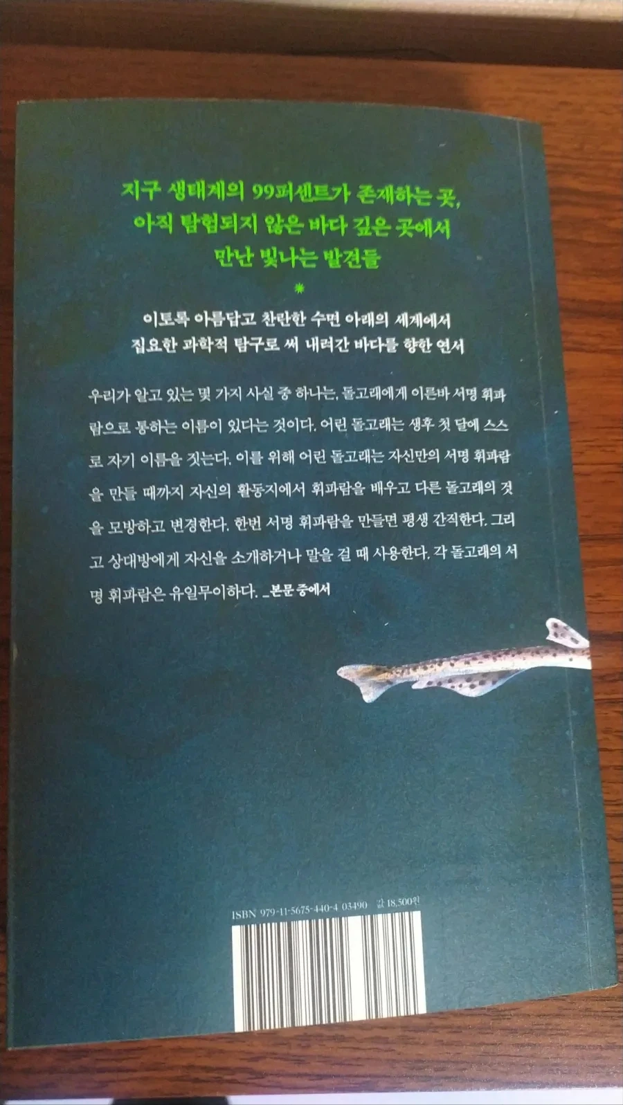 저자는 상어뿐만 아니라 돌고래의 다양한 의사소통 방법과 홍해파리의 무한에 가까운, 불사불멸의 생활 주기에 대해 관심을 기울인다. 돌고래는 인간을 닮거나 이에 근접한 소통을 하는 것이 아닌, 독자적이고 광범위한 대화를 통해 서로 교감하고 사회성을 구축하고 있었다. 우리는 단지 그들을 수조에 가두어 관찰하며, 오랜 연구를 통해 일부의 소통 방법과 그 의미를 찾은 것에 불과하다. 저자는 그들을 감금하여 한낱 재주를 부리는 동물로 취급하는 것을 비판하면서, 바다 생명체의 권리와 존엄성을 보장해야 한다고 주장한다. 나 또한 저자의 주장에 적극 동의한다.