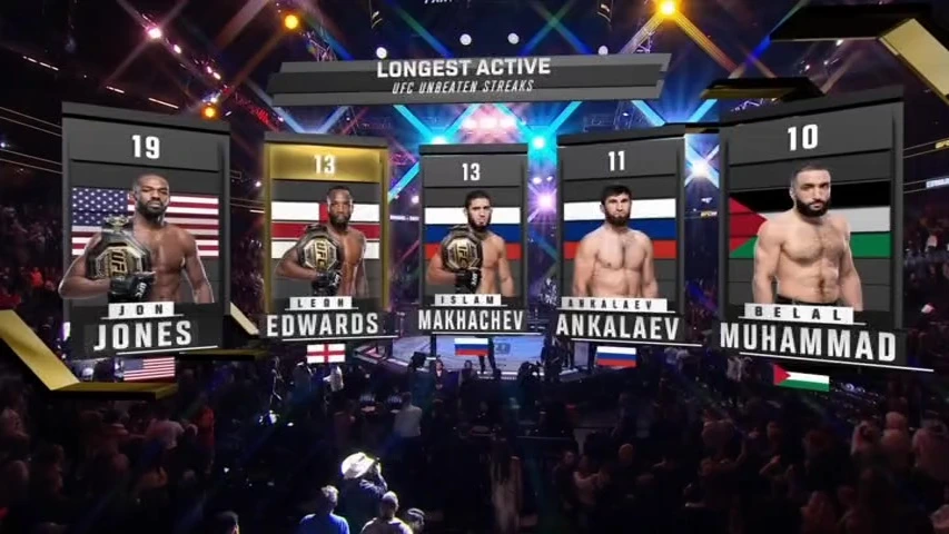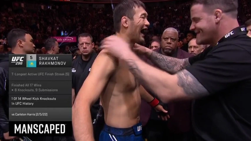 첫 파이트부터 조시 에밋의 상대를 실신시키는 통렬한 오른손 한 방이 터지면서 T-Mobile Arena의 수많은 관중들을 열광하게 했다. 이후 우즈벡의 카자흐족 전사 Shavkat Rakhmonov(샤흐캇 라흐모노프)가 찰거머리처럼 상대를 물고 늘어지는 그라운드 기술로 2라운드 4초를 남기고 상대의 탭 다운 기권을 받아냈다. 그는 18승 무패로 웰터급 강자로 떠오르며 챔피언 벨트에 도전할 차기 컨텐더로 떠올랐다. 라흐모노프의 18승은 무려 전 경기 피니시로 화끈한 공격력과 빈틈없는 서브 미션 기술을 팬들에게 각인시켰다. 한국의 최홍만 선수를 연상시키는, 거구에서 뿜어져 나오는 괴력과 친근한 인상이 매력 포인트다.
