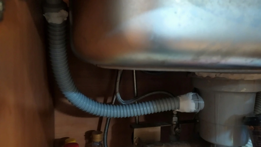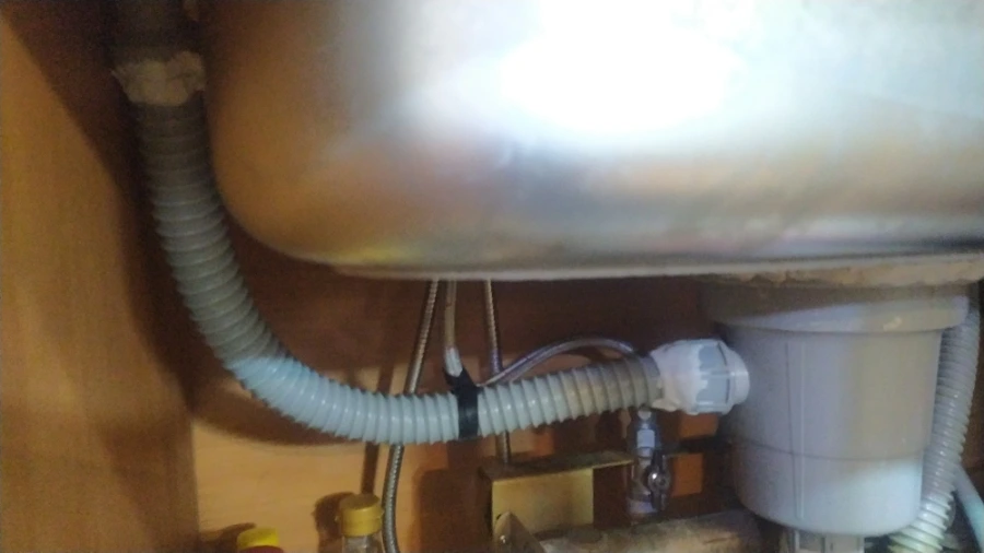 전 위 사진에서 보이는 배수 라인이 마음에 들지 않아 양 끝단의 하얀 퍼티를 제거하고 길이를 짧게 단축시켜 재연결했어요. 아래 사진처럼요. 만약 정체된다면 개수대 측면 배수구에 물이나 세정액을 쏟아부어 고인 이물질을 세척할 예정이랍니다.