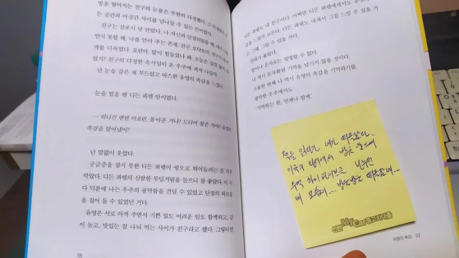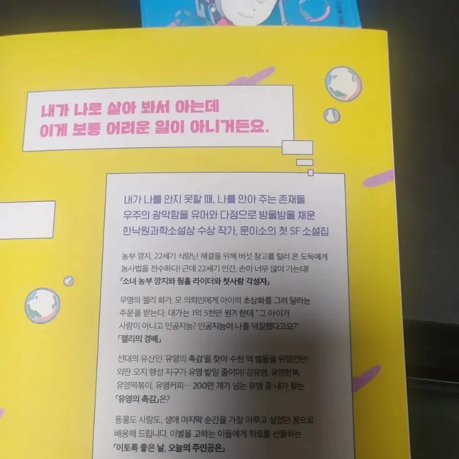 재기 넘치는 문이소 작가의 문장은 거침이 없다. 독자가 미처 예상치 못한 지점으로 워프 한 작가의 상상력은 평행 우주 어딘가로 우리를 데려간다. 허나 SF 소설이라 해서 현실과 동떨어진 가상의 이야기를 다루는 것은 아니다. 작가는 곁에 머무르고 스치는 인연들, 이를테면 표고 농사를 짓는 언니네 가족들, 몇 년째 놀이터를 지키는 검은 길냥이, 요양원에서 함께 정을 나누었던 할머니들에게서 영감을 받아 이야기를 써냈다고 고백한다.