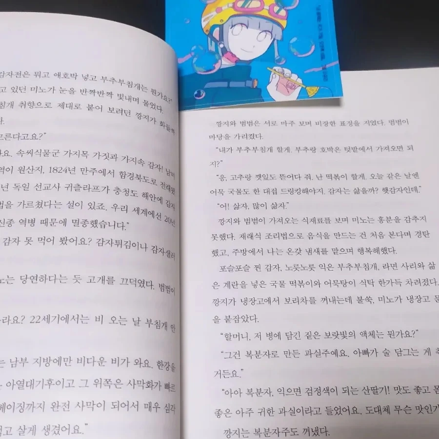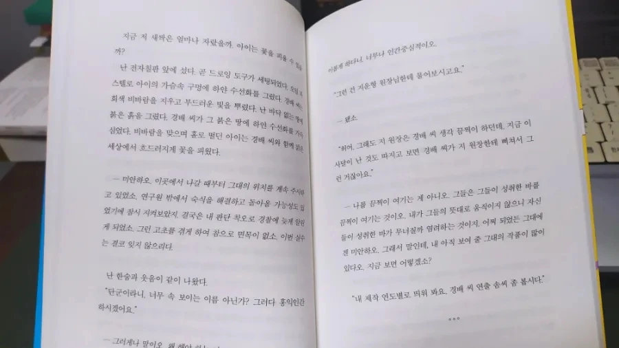 베스트 웹 소설 목차를 보는 듯한 제목만 보면 그 내용을 짐작조차 하기 힘들다. 마치 내부가 단단히 봉인된, 국가기밀 자료가 가득한 보안 캐비닛 앞에 선 듯하다. 하지만 페이지를 넘겨 차근차근 읽다 보면 자신도 모르게 히죽, 웃음이 터진다. 미래 평행 지구에서 건너온 웜홀 라이더에게 현재의 맛돌이 요리를 선보이는 장면에선 절로 군침이 넘어간다. 한 예술가의 디지털 작품을 스토킹 하는 인공지능 AI의 덕질은 단순한 팬심을 넘어 일종의 애정 행위처럼 보인다. 읽다 보면 허무맹랑하지만은 않은, 머지않은 미래에 이런 AI 스토커가 출현할 수도 있겠다, 수긍하며 고개를 끄덕일 수밖에 없다.