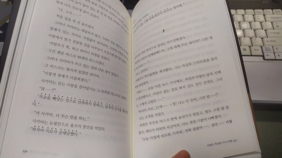 이어지는 단편은 브리콜라주 형식으로 짜였다. 미스터리 퍼즐을 풀어야 하는 대학 입시를 기획한 담당자들, 기자, 교수, 학생, 학원 전문가, 블로거, 인플루언서 등이 총출동하여 다양한 의견을 쏟아낸다. 한바탕 난장이 펼쳐진 듯하다. 판데믹 시절 줌(Zoom)을 통해 온라인 생일 파티를 하던 중, 친구가 살해됐다. 과연 범인은 누구일까? 파행적인 대입 출제 지문이 제시되고, 이를 풀이하는 각계의 의견이 이어지며 독자의 흥미를 돋운다. 좀비 아포칼립스 물의 신경지를 개척한 맥스 브룩스의 <세계대전Z>와 비슷한 형식으로, 이전 미스터리 소설의 틀을 깨는 대담한 시도를 꾀했다고 평하고 싶다.