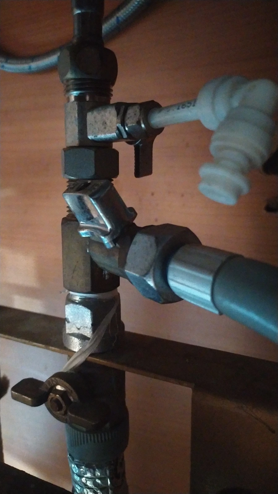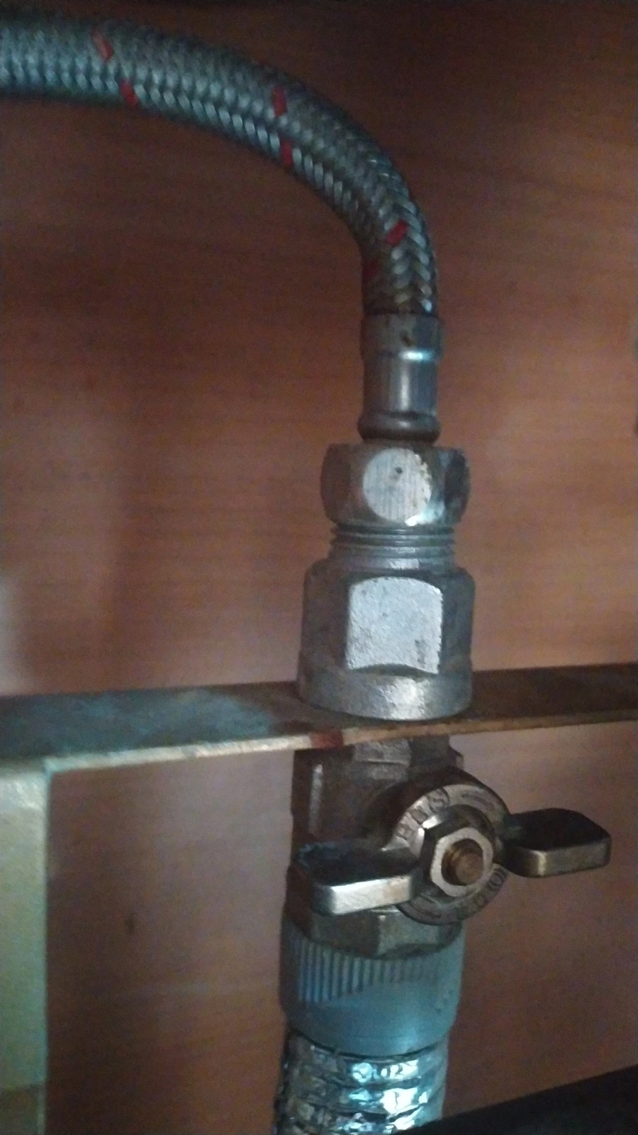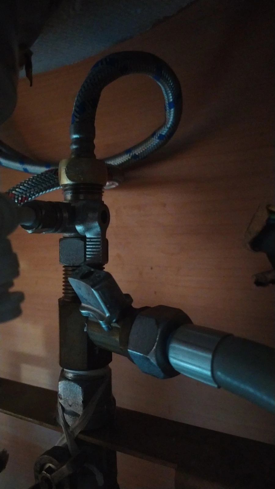 일단 호스 색깔, 레버 위치 등을 기억하기 위해 이전 설치 라인을 사진 찍어두고요. 온수는 빨간색 라인, 냉수는 파란색이겠죠. 당연히 교체하려면 온수, 냉수가 나오지 않아야겠지요. 나비 모양 밸브를 90도 돌려 물 흐름을 차단합니다.