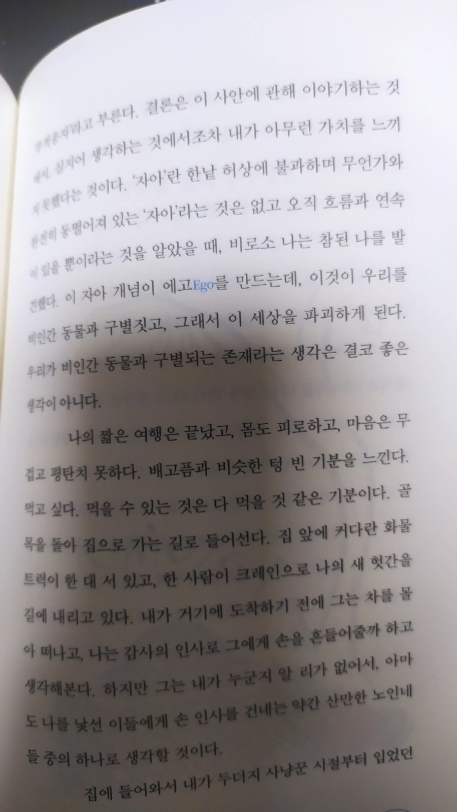 마크 헤이머는 소년 시절의 자신을 '그'라 칭하며 거리를 둔 3인칭 시점으로 바라본다. 과거의 기억을 헤매다 어쩔 수 없이 고통, 어두움의 늪에 빠지지만, 오래 허우적대지 않고 빠져나와 지금의 '나'로 돌아온다. 음영이 짙은 '자아'를 버리고 현재의 투명한 '무아'로 돌아오는 지난한 과정은 그가 평생을 두고 연마하고 훈련한 것이었다. 그는 평생의 반려자 '페기'에게 헌신하고 자식들을 양육하며, 지난날 친부와 같은 무책임한 과오를 저지르지 않으려 노력했다. 늙어서는 끊임없이 변화하는 정원을 몸소 가꾸며, 갈수록 쇠잔해지는 심신의 평안을 찾고 회복을 염원한다.