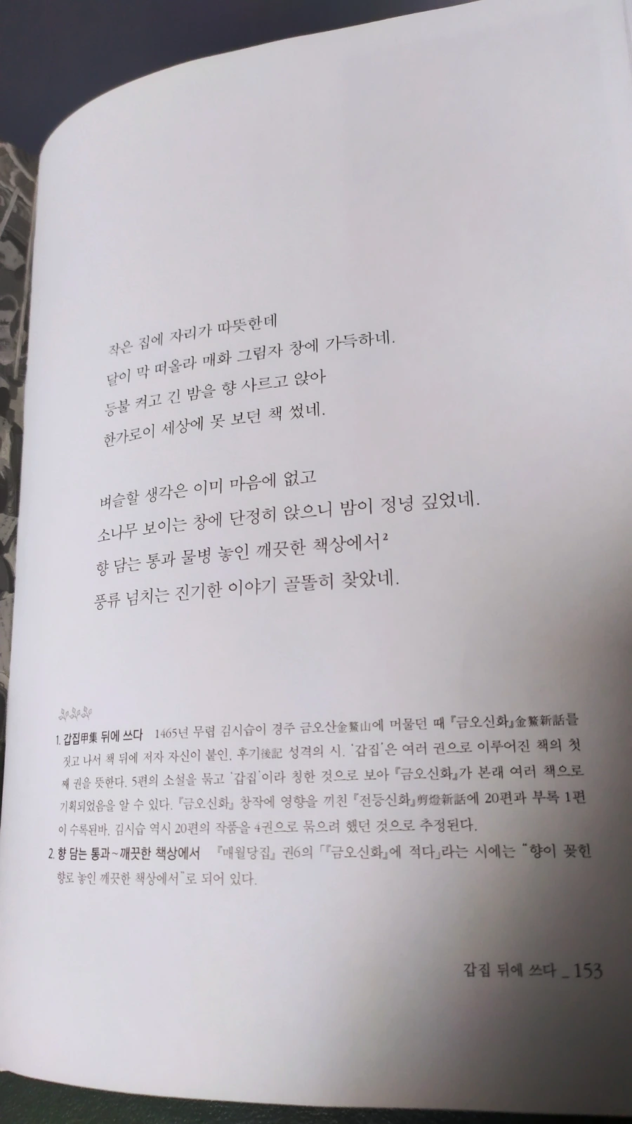 최초의 한문 소설로 알려진 <금오신화>. 책에 따르면 사실 최초의 창작 소설은 최치원이 지은 <호원(김현감호)>이라고 한다. 학창 시절 교과서에서 일부 단락만 학습하고, 어언 30년이 흐른 후에야 완독 하게 되었다.