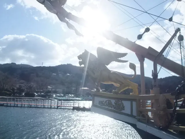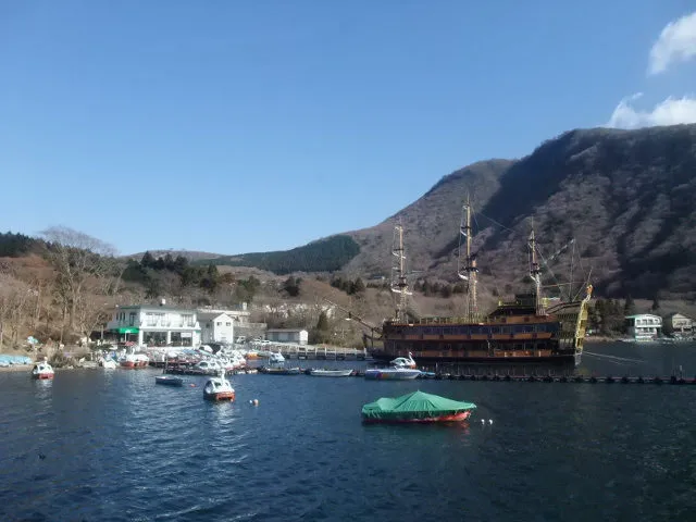 토겐다이 항에서 그럴듯한 규모로 재현한 해적선을 타고서 천천히 호수의 물살을 따라 남하한다.