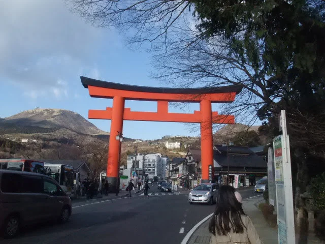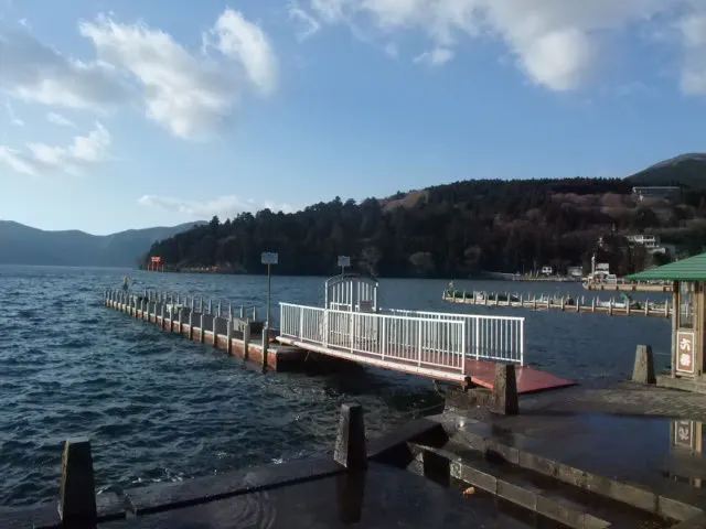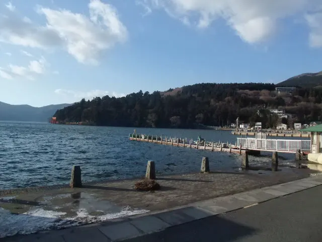 남쪽 항구에 접근하자 멀리 솟은 다홍빛 신사(shrine) 입구가 하나둘 모습을 드러낸다. 개중에는 아시노코 호수에 기둥이 잠긴 신사 관문 'Heiwa no Torii(도리이 鳥居)'도 있어 눈길을 끌었다. 배에서 내려 근처의 식당에서 우동으로 끼니를 해결했다.