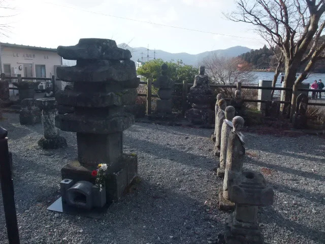 모토 하코네 초입을 지키는 제2 결계 도리이 부근에는 수많은 비석들이 세워져 있다. 비석 모양은 제각각이고 크기 또한 다르다. 이들은 영험한 힘을 지닌 하코네 신토 신사의 깊은 역사와 무속 신앙을 보여주는 상징물이라 할 수 있다. 하코네는 에도 시대에 도카이도(東海道)라 불리던 요지 중의 요지라 상인, 무사들의 왕래가 잦았고 전쟁 또한 빈번했다. 세상을 등진 이들의 명복을 비는 비석도 많고, 가문의 소원을 이루기 위해 또는 문인의 문학적 성취를 기리기 위해 기념비를 세우는 경우도 있다.