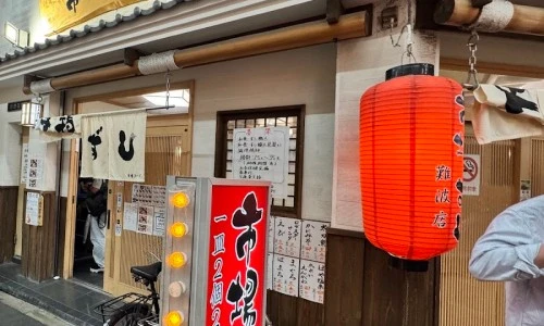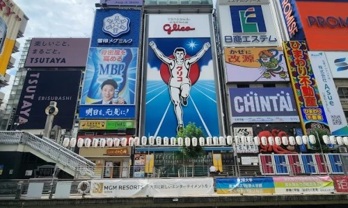 도톤보리 강은 오사카 시를 동서로 가르는, 약 2.7 km 길의 운하이다. 유명 상점가들이 강변을 따라 끝도 없이 늘어서 있다. 강폭은 좁은 편이라 수영에 자신 있다면 능히 건널 만하다. 다만 그 깊이를 가늠할 수 없어서 위험할 수 있겠다. 한신 타이거스가 우승하거나, 일본 국대 축구팀이 좋은 성적을 거두면 열성 팬들이 이 강에 다이빙하거나, 북 치는 '쿠이다오레 타로', KFC 할아버지 '샌더스 상' 같은 상징물을 대신 입수시키기도 한단다.