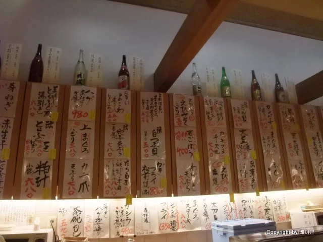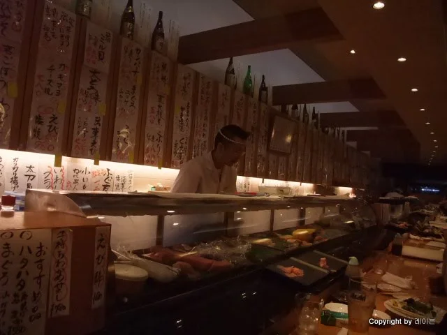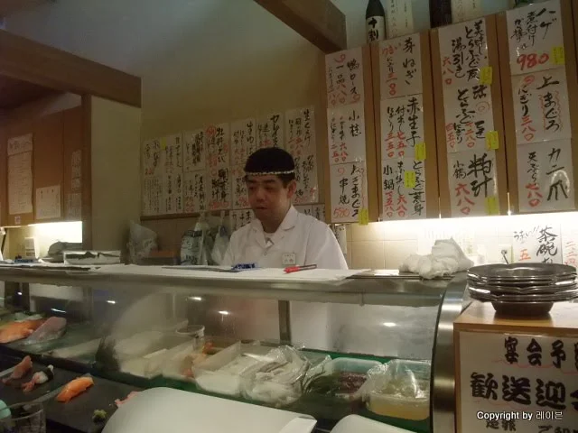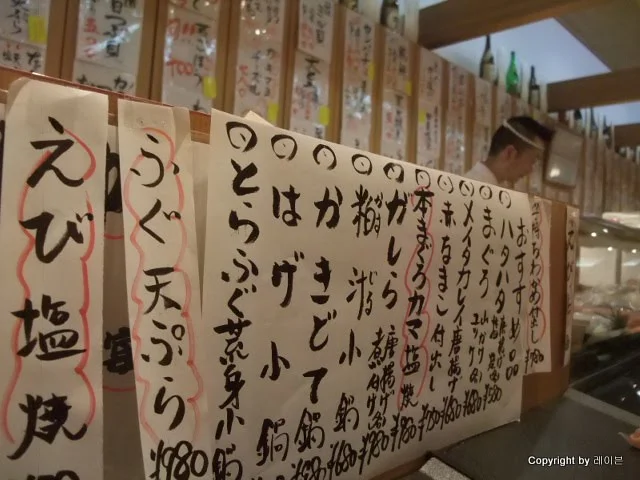 결국 저녁에 이어 야식 한 끼를 더했다. 선이 스시에 굶주렸는지 '시장 스시'라는 빨간 간판을 보자 망설임 없이 포렴을 제쳤다. "이랏샤이마세!" 바 건너편에 도열한 셰프들이 일제히 외친다.