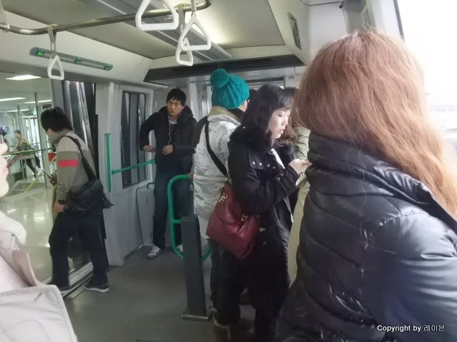 우리는 공항 플랫폼과 연결된 고속 철도를 타고 숙소로 이동했다. 열차는 동그란 차창과 진청색 객차가 날렵해 보이면서 매력적이었다.