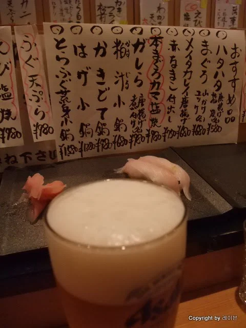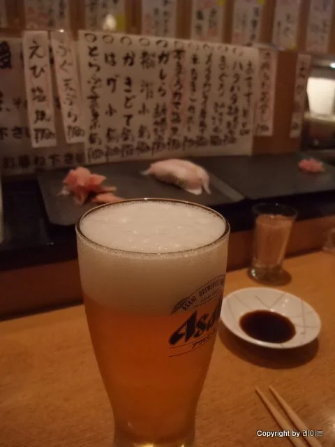 오래 걸었으니 아사히 생맥주를 시켜 갈증을 달랜다. 두터이 형성된 흰 거품이 입가에 묻어야만 좋은 맥주를 마셨다! 만족할 수 있는 것이리라. 우리는 서로의 입가에 묻은 거품을 닦아주며 방긋 웃었다.