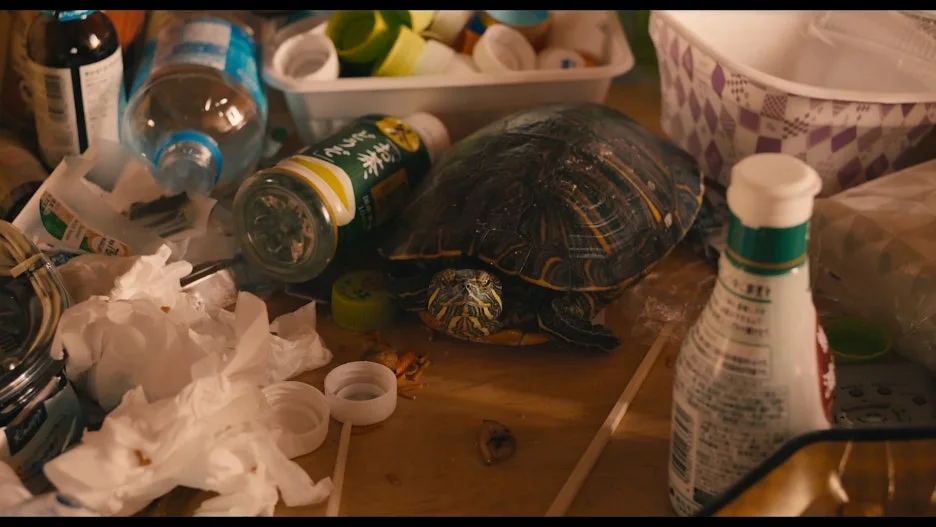 감독은 요리코에게 삶의 변화를 위한 깨달음을 주기 위해 직장 동료이자 귀여운 할머니 미즈키(기노 하나)를 등장시킨다. 무뚝뚝하지만 불시에 푸근한 웃음을 짓는 감독의 페르소나 '모타이 마사코'처럼 요리코에게 선한 영향력을 행사한다. 방황하며 갈피를 잡지 못하는 그녀 옆을 지키며 넌지시 조언을 제시하는 든든한 조력자 역할을 한다. 수영을 즐기다 쓰러진 미즈키 할머니의 애완 거북이를 거두기 위해 그녀의 집을 방문한 요리코는 손자의 위패와 쓰레기장을 방불케 하는 집 안 모습에 충격을 받고 오열한다. 오물이 가득한 폐허 속에 끝내 생존한 암수 거북이가 불쑥 고개를 내밀고..