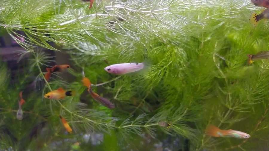 결국 베타 암컷들이지만 서로의 케미가 좋지 않았는지, 자반항에서 합사가 힘들겠다 판단해서 화이트 베타를 옆 40 배럭 어항으로 옮겨 주었어요. 막구피들과 블랙 안시, 생이 새우들이 어울려 지내는 어항인데, 불청객 베타 한 마리가 난입하니, 처음에는 구피들이 입질을 하고 거친 몸싸움도 벌이면서 견제를 하네요. 한동안 옥신각신 소란이 일다가 베타가 이에 맞서지 않고 유유히 뒤로 빠지면서 상황이 정리되었습니다.