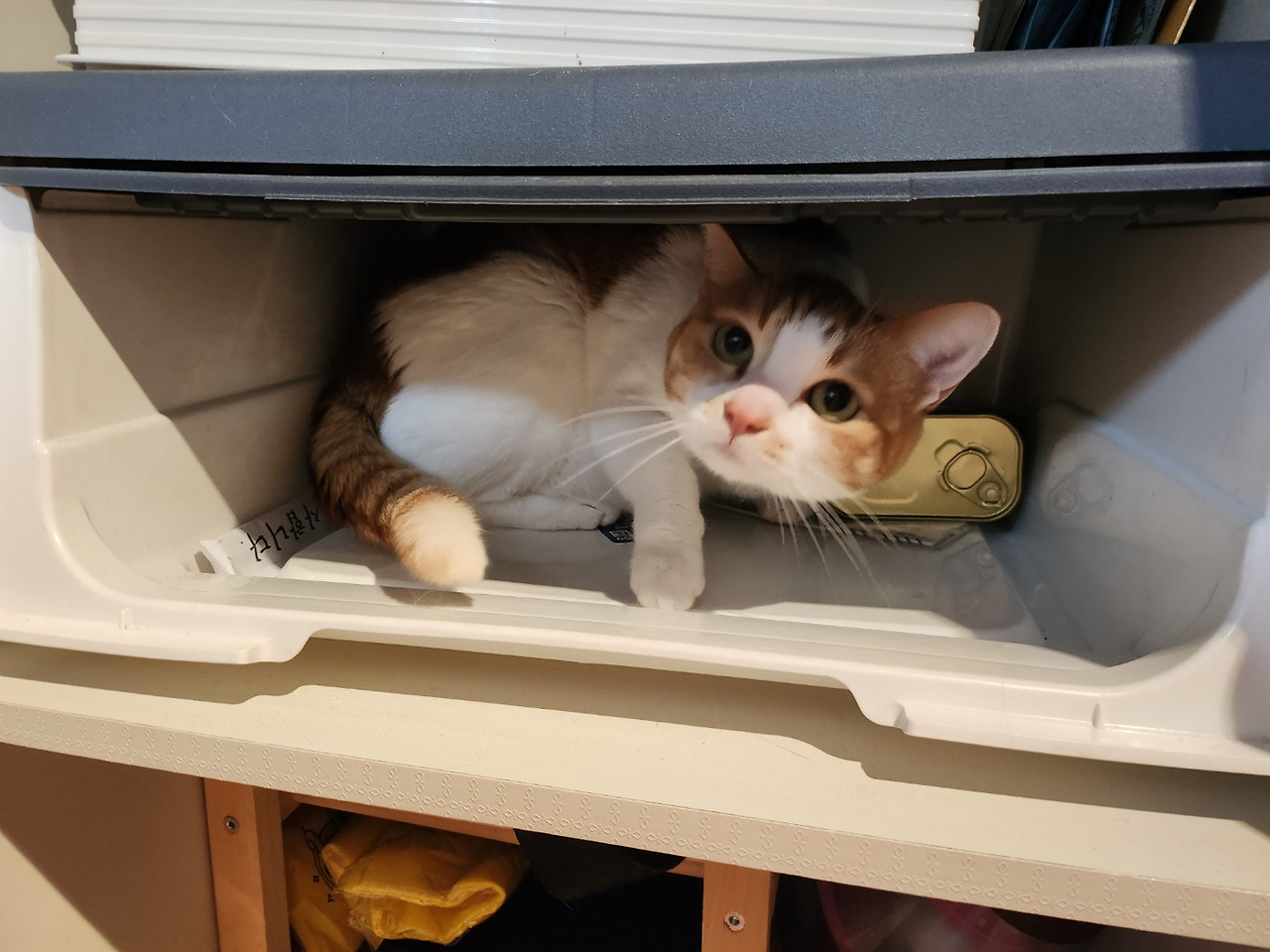 지난밤 모란이란 이름을 가진 고양이가 햇반을 담아두었던 곳이 텅 비자 그곳에 납작 엎드려서 불러도 나오지 않고 있어요.
