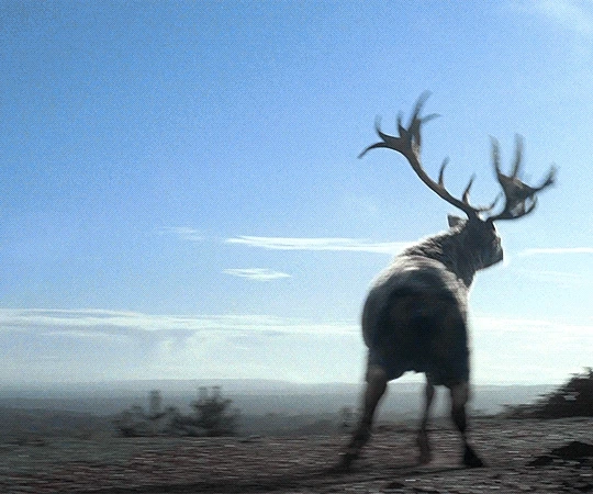 거대한 뿔을 지니고 있던 사슴은 고개를 흔드는 일이 무척 힘겨워 보였다. 그도 그럴 것이 자라난 뿔 사이로 사슴의 뿔과 남겨진 다른 사슴의 머리 부분이 걸쳐져 있기 때문이었다.