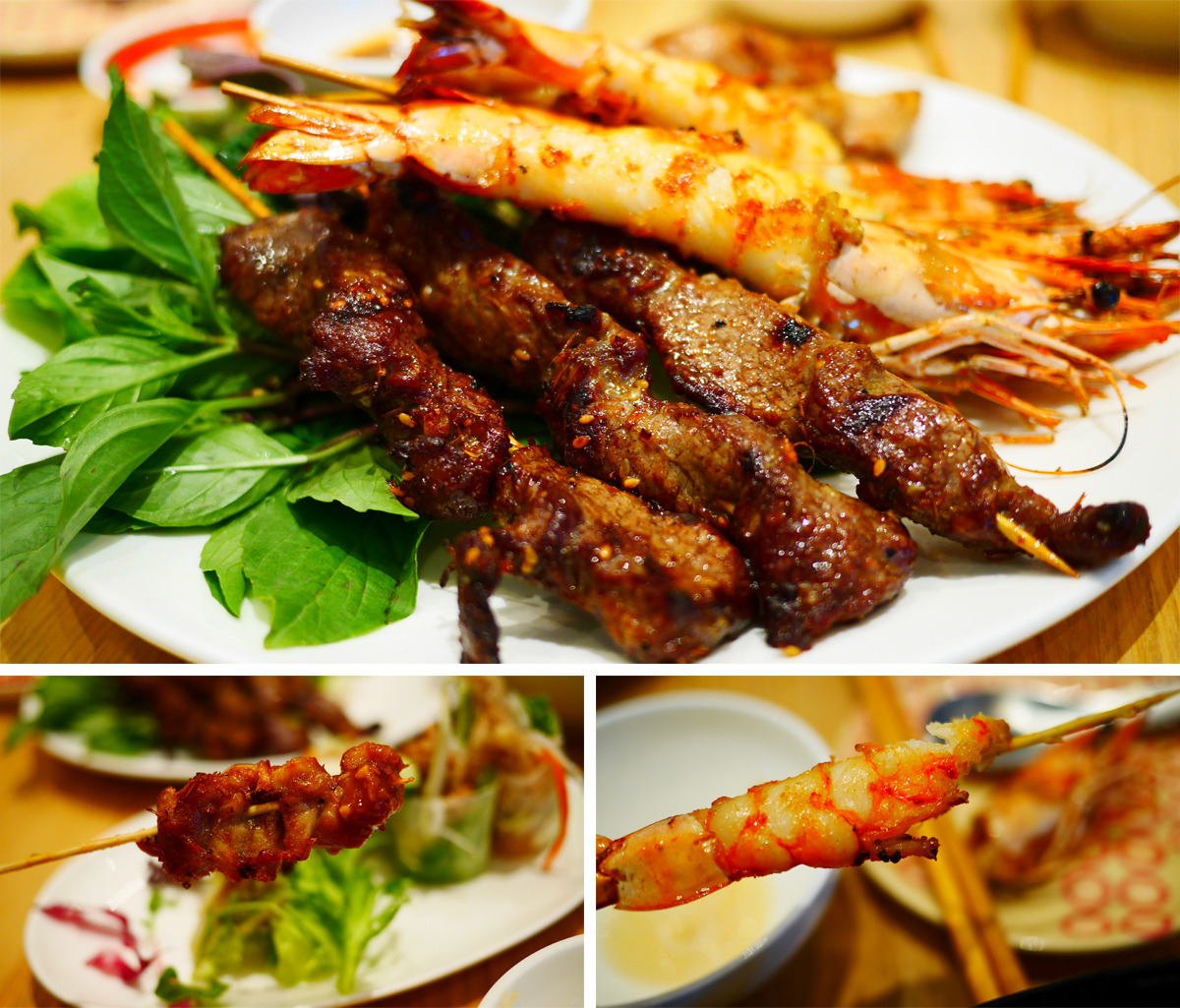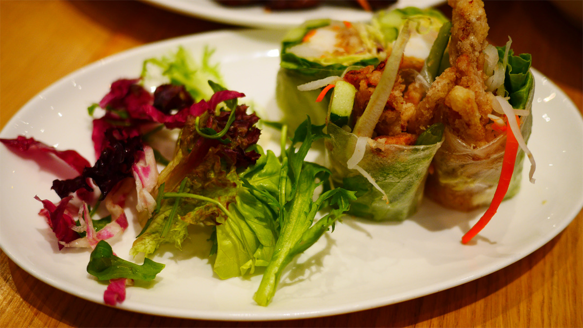 쌀국수 하나, 그리고 소프트쉘크랩롤, 바베큐꼬치 요리도 하나 주문했어요.