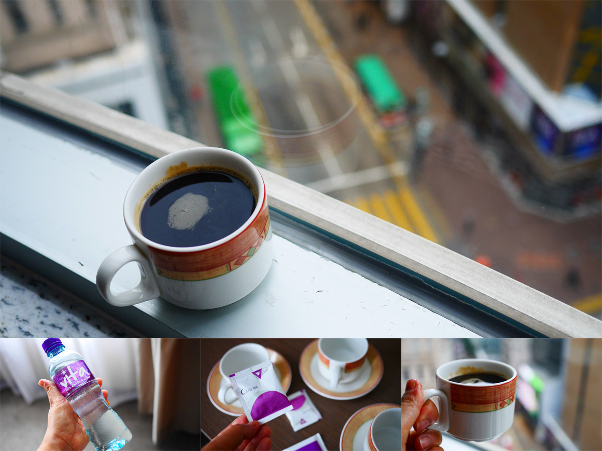 침사추이 YMCA 호텔에서 제공하는 일회용 커피에요.