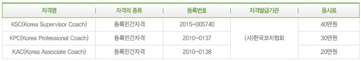 (리스트 참고 http://www.kcoach.or.kr/03certi/certi0205.html)