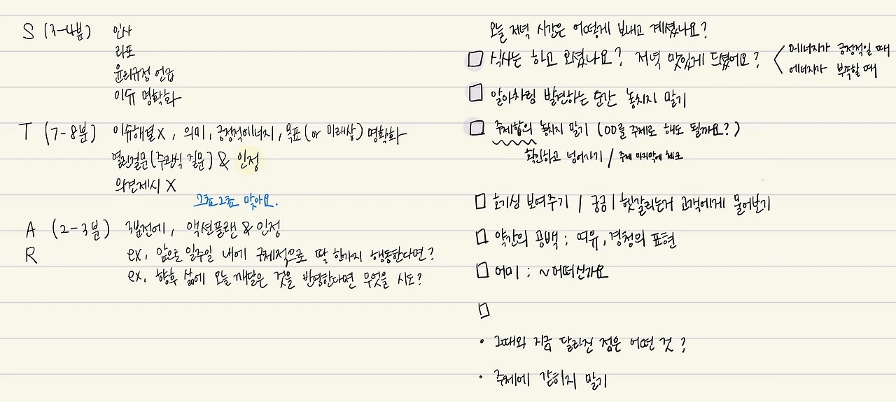 STAR모델을 활용한 나만의 템플릿을 만들어둔건, 정말로 큰 소득이다. 유료고객을 만나든, 어려운 고객을 만나든 어떤 질문으로 고객을 안내해야할지, 길잡이가 되어줄 든든한 컨닝 페이퍼가 생겼다. 그것도 온전한 나의 언어로 :) 준비하시는 분들께 부디 도움이 되었으면 좋겠다.