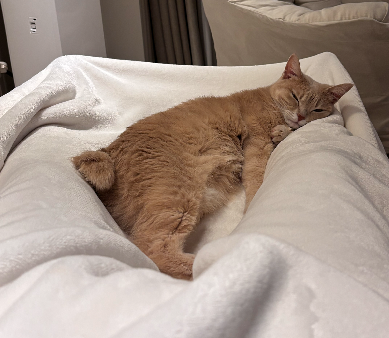 특히 카루는 내 발목을 베고 자는 것을 좋아한다.