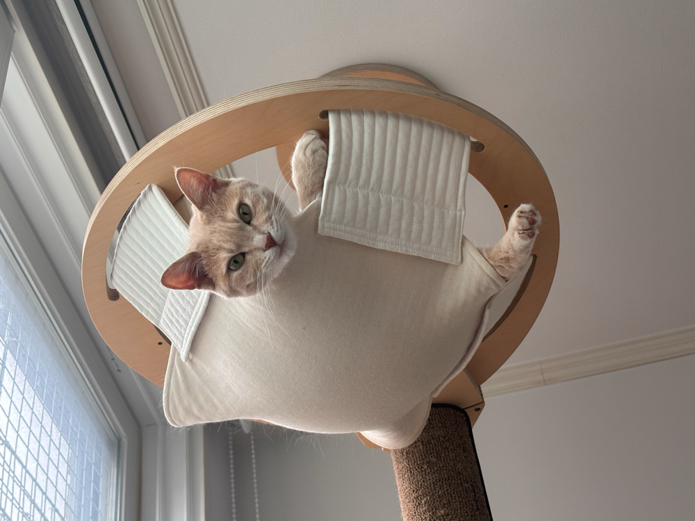 지금보다 더 작았을 때 화장실 세면대를 밟고, 수건걸이를 밟고 창문으로 올라가길래 기겁했었다. 와 역시 고양이는 못 올라가는 곳이 없구나 싶었는데 웬걸, 내려오지 못하고 와웅와웅 나를 부르는 거다. 그래 아기 고양이라 못 내려오는구나 싶어서 박스를 엘리베이터 삼아서 내려줬었다. 그때는 다 큰 성묘가 됐는데도 이럴 줄 몰랐지.