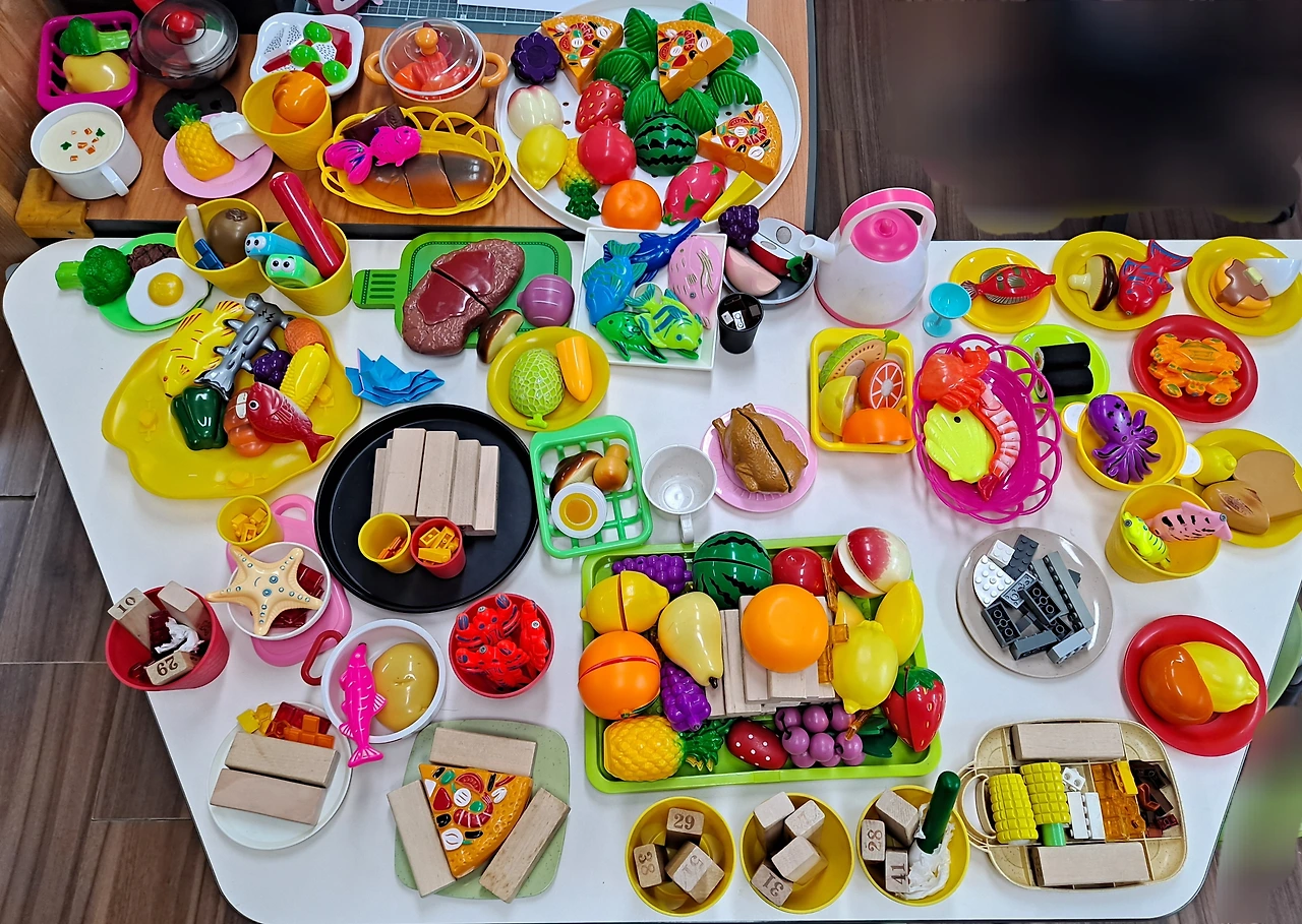 소꿉놀이 상자 앞으로 모여드는 아이들. 곧 작은 손에 접시와 컵, 모형 음식들을 하나씩 만들어 온다. 누군가는 "이건 생선이에요!" 누군가는 젠가를 담아서 잡채라며 접시에 올린다. 음식은 계속 만들어졌고, 상은 점점 푸짐해진다.