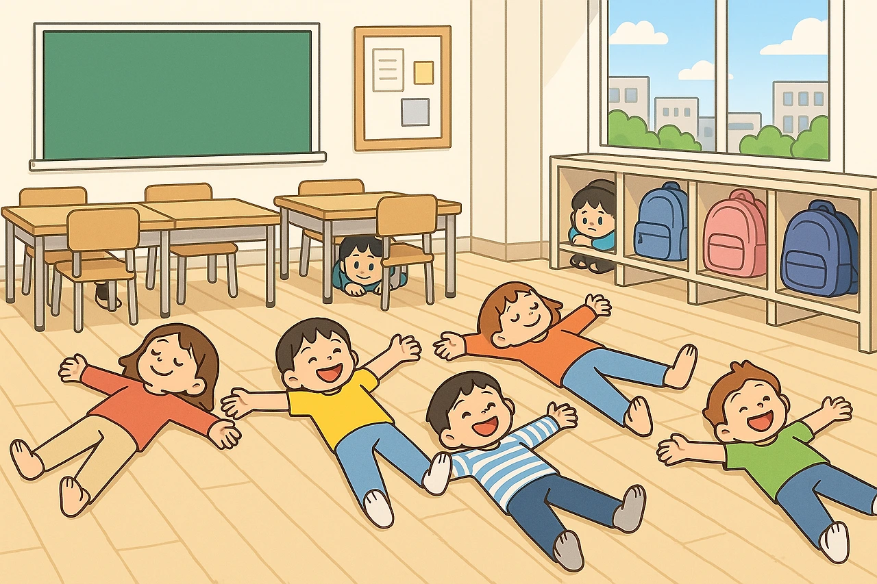 아이들은 환호성을 지르며 이불 없는 낮잠 연극을 시작했다. 누워서 책을 읽는 아이 책상 밑에서 조용히 낄낄거리는 아이 그 모습을 보고 있자니