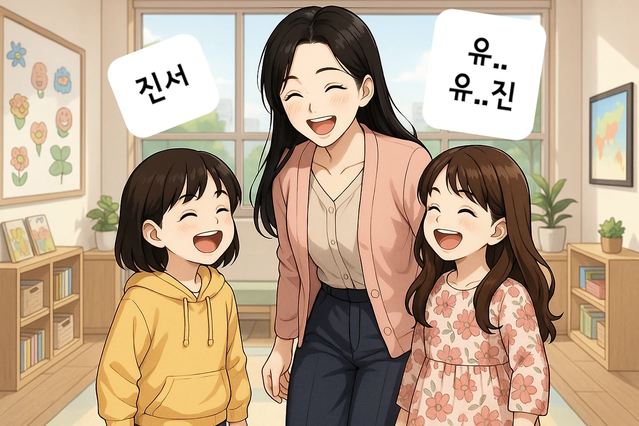 "진서, 유진아. 그럼 선생님 이름 기억나?"