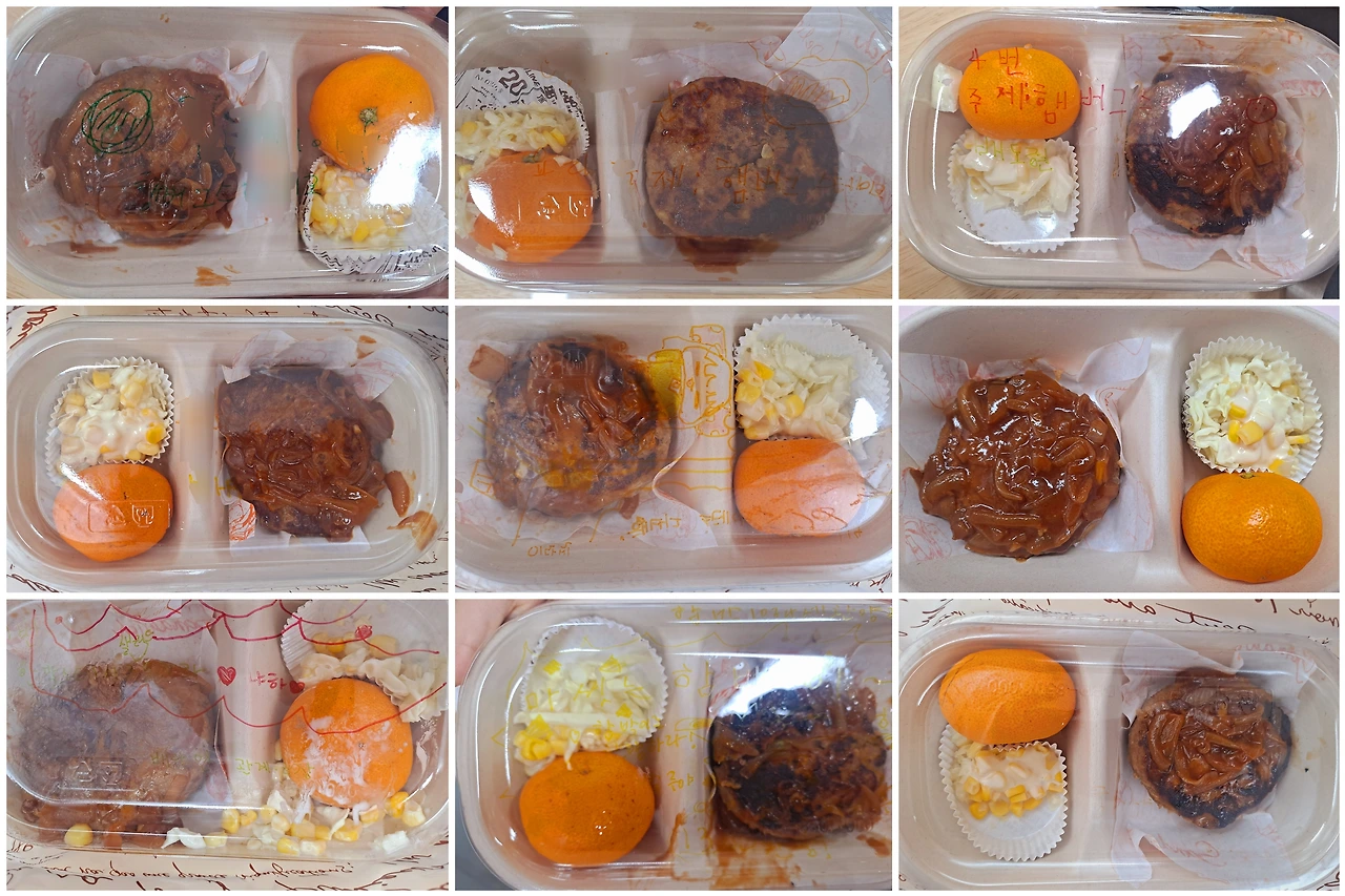 모양 만들기에 들어서면 패티는 각자의 개성을 그대로 닮아간다. 두툼한 것도 있고 얇은 것도 있고 살짝 자유분방한 모양도 있다. 나는 돌아다니며 모양을 다듬어준다. 팬 위에서 고기가 구워지며 '치익' 소리가 실과실을 채우면 아이들의 코끝은 이미 맛있는 상상으로 가득하다. 나 또한 맛있는 냄새에 배고픔이 몰려오는 만큼 아이들도 곳곳에서 "배고파요. 먹고 싶어요"를 외친다.