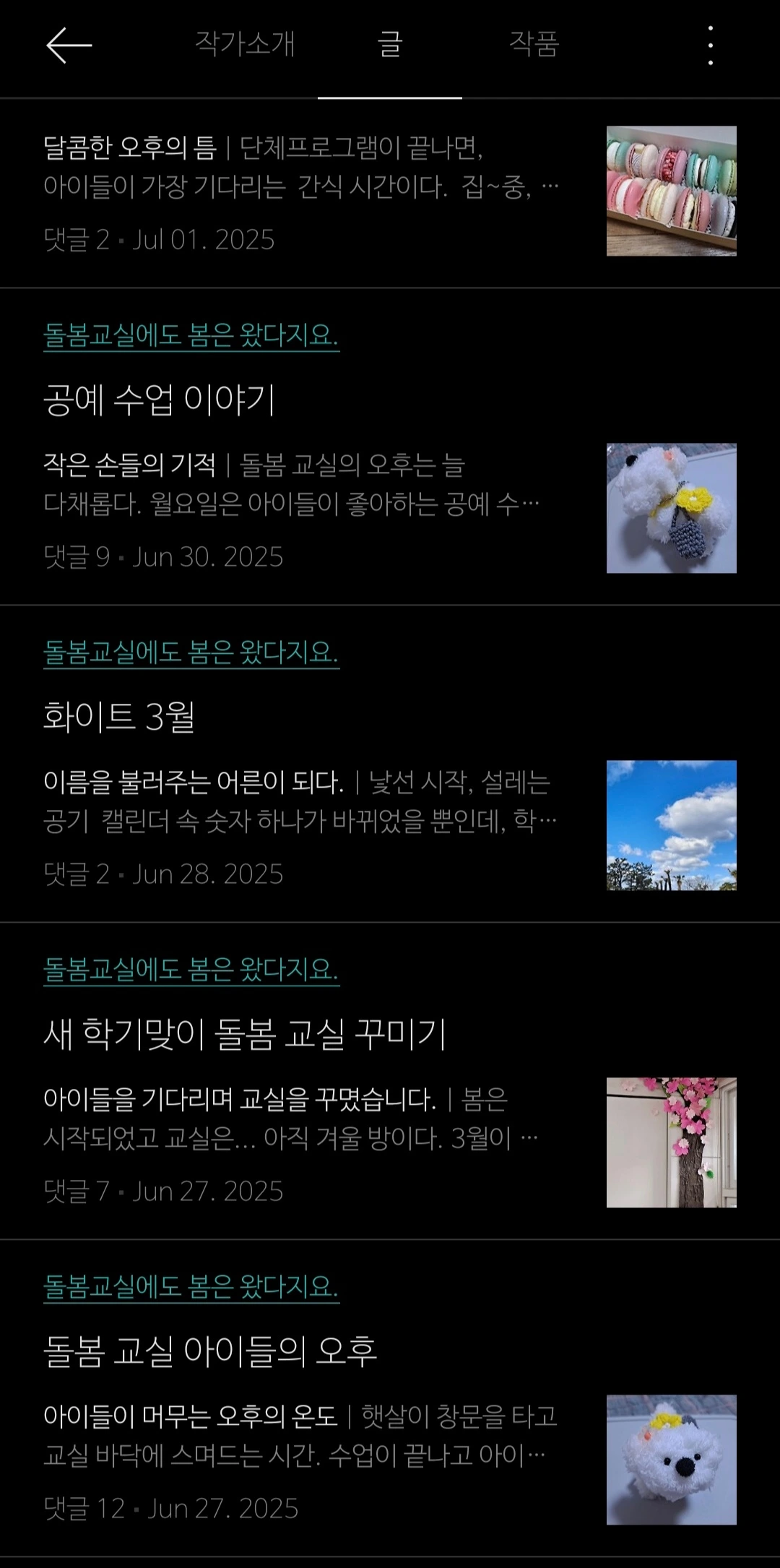 처음엔 조심스럽게 한 편, 두 편 써 내려가다 어느 날 '브런치북'이라는 존재를 알게 되었고, 시리즈도 만들고, 작가 소개를 채우고, 하나의 책처럼 꾸며가는 흐름이 실수도 있었지만 재미있고 무척 설레었다.