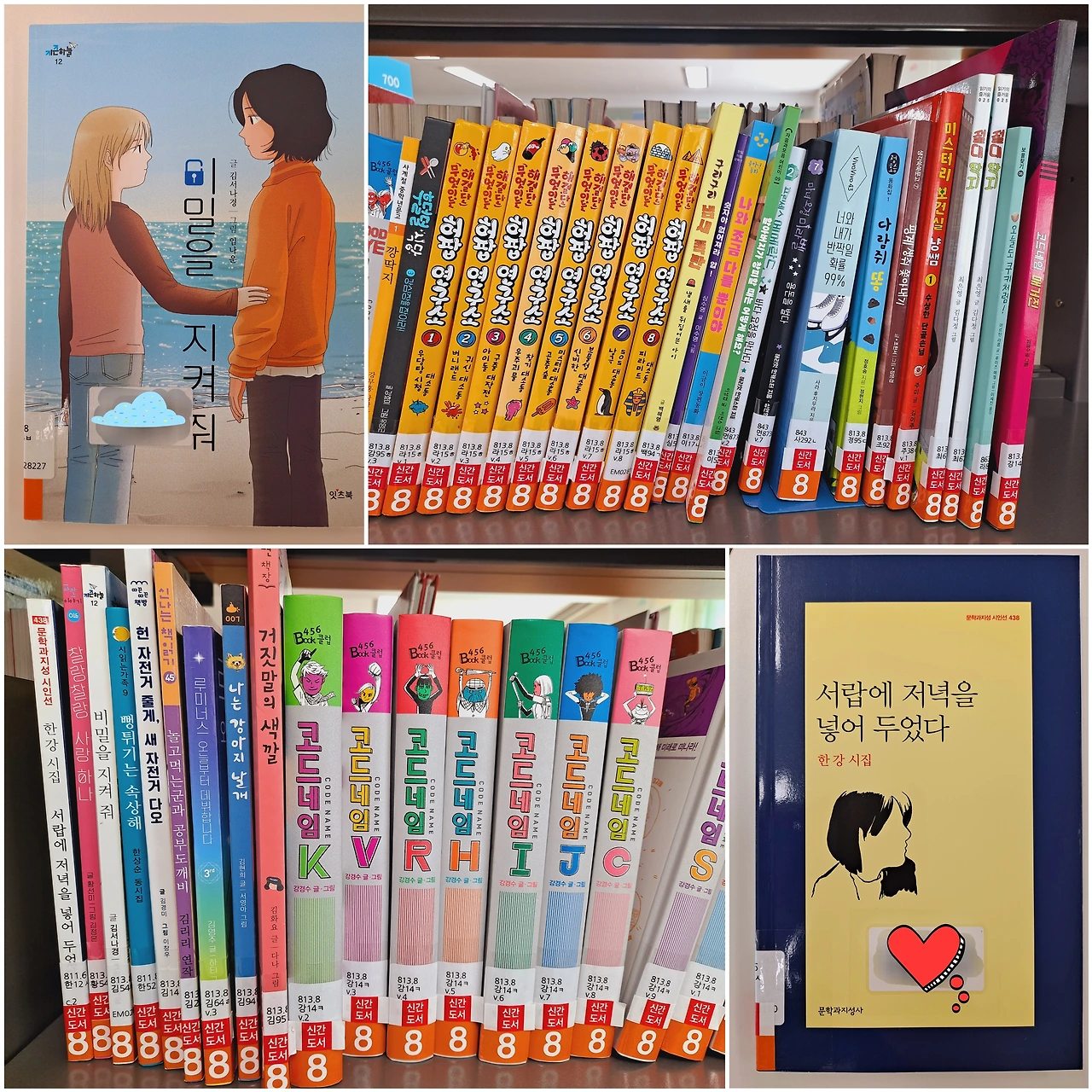 방학 내내 공사로 닫혀 있던 학교 도서관도 활짝 열렸다. 아이들과 도서관으로 향한다. 학부모 봉사자님이 반갑게 우리를 맞아주시니 도서관 공기도 더 따뜻하게 느껴진다. 아이들은 금세 책꽂이 앞으로 몰려갔다. 형형색색의 위인전, 과학 시리즈, 인물 이야기, Why?책까지 책장이 무너질 듯 빼곡하게 꽂혀 있다.