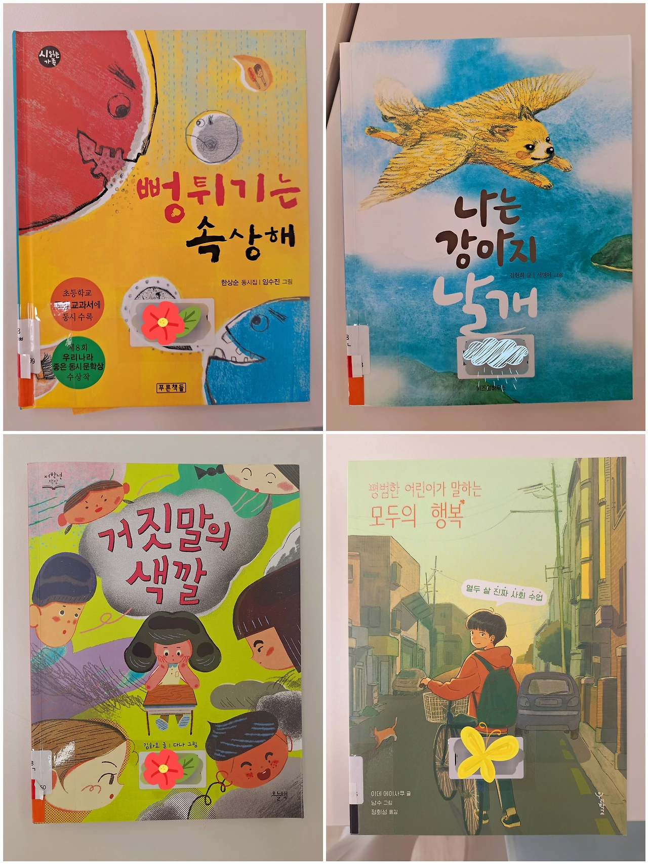 <평범한 어린이가 말하는 모두의 행복>에서는 열두 살 아이가 세상 속에서 진짜 행복이 무엇인지 고민하는 사회 수업 이야기에 귀를 기울였고, <거짓말의 색깔>을 읽던 아이들은 "거짓말도 색깔이 있다고?" 하며 깔깔 웃었다. 또 다른 아이는 하늘을 나는 강아지 그림에 이끌려 <나는 강아지 날개>를 펼쳐 들었다. 한쪽 구석에서는 <뻥튀기는 속상해>를 읽던 아이가 "뻥튀기가 왜 속상했을까?" 하고 책장을 넘겼다.