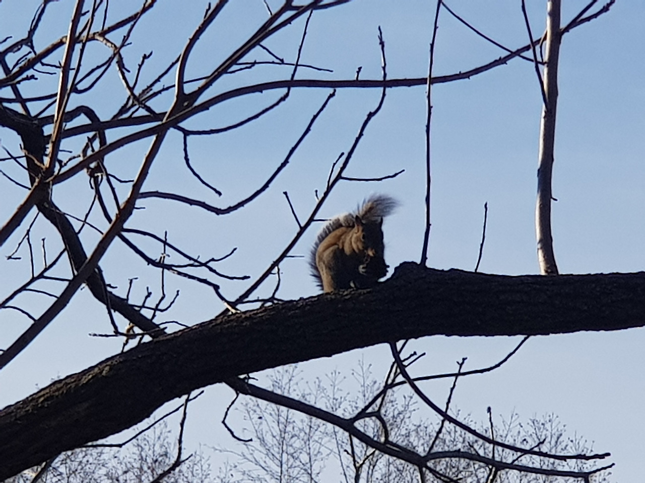 다람쥐의 영역은 비단 산책로뿐만은 아니다. 집 앞에 있는 나무 위 둥지를 보고 새집이려니 생각했는데 알고 보니 다람쥐의 집이었다. 토요일 아침 창밖을 내다보니 마침 나무 위 집 밖으로 느긋하게 마실을 나가는 다람쥐와 눈이 마주쳤다. 봄기운이 찾아오는 어느 날 창문이라도 열어놓으면 우리 집마저 접수해 버릴 당당한 기세다.