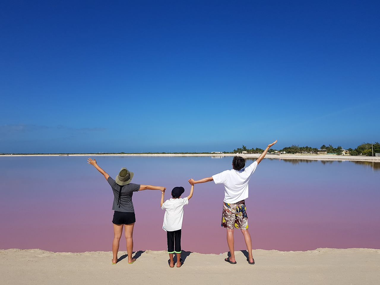 다음날에는 아침 일찍부터 현지 여행사를 통해 관광에 나섰다. 10년 전쯤 칸쿤에 배낭여행을 왔다가 눌러앉았다는 한국인 가이드와 스무 명 정도 되는 한국 관광객들과 함께 다녔는데 우리를 제외하고는 모두 신혼부부들이었다. 처음 찾아간 곳은 핑크 라군이라는 곳으로 물속에 서식하는 핑크 새우들 덕분에 환상적인 핑크빛 물색을 자랑하는 곳이다. 파이팅 넘치는 신혼부부들은 인생 샷을 남기기 위해 작렬하는 태양 아래에서도 지치지 않고 사진을 찍어댔다.
