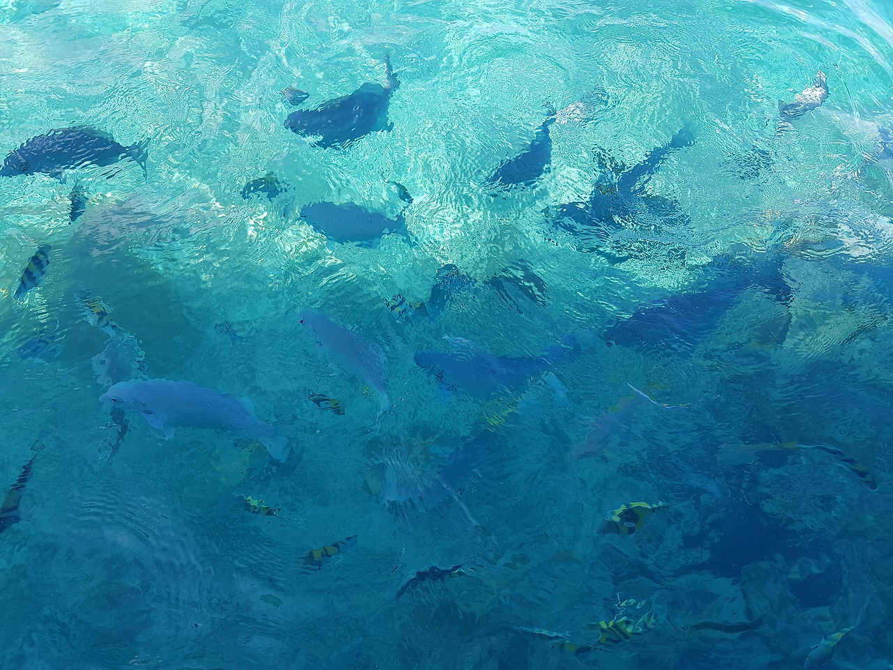 Punta Nizuk(푼타 니죽)이라는 곳에 다녀왔다. 참치만 한 무지갯빛 물고기부터 총천연색 열대어들을 실컷 구경할 수 있었다. 필리핀에서 스노클링 하면서 물고기가 너무 없어 실망한 기억이 있는데 이곳은 산호가 많아 좋은 서식환경이 조성되어 있는 덕분에 하와이만큼이나 물고기들이 풍부하고 다양했다. 스노클링이 익숙지 않은 아들은 다른 외국 아이와 선상에서 놀면서 빵조각을 던지며 몰려드는 물고기들 구경에 신이 났다.