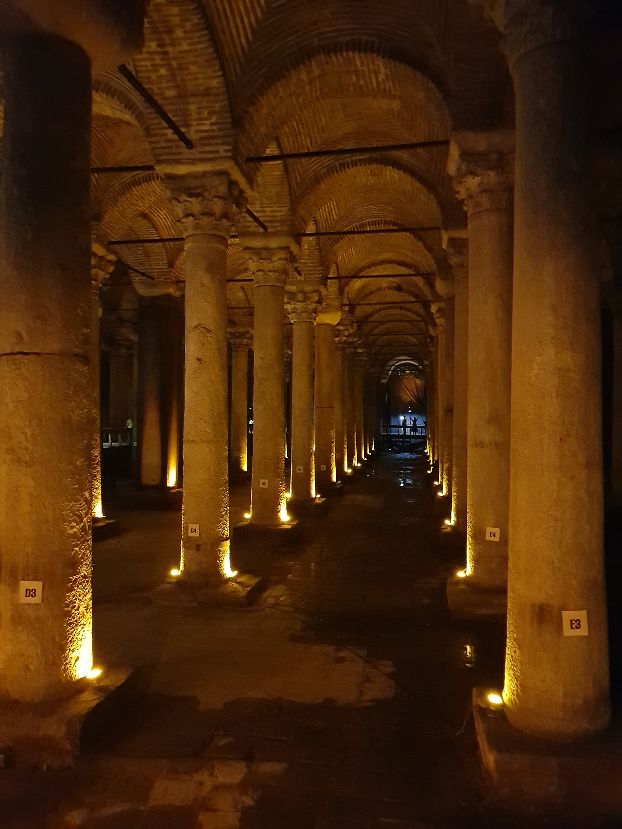 예라바탄사라이는 동로마시대에 황실에 물을 원활하게 공급하기 위해 만든 지하저수지로 예술작품 같은 기둥 336개가 지하공간을 떠받치고 있는데, 공간 자체가 마치 물에 잠긴 그리스 신전처럼 신비롭고 아름답다. 부서진 건축물 등에서 가져온 자재로 기둥을 만들어서 모양도 각기 다르고 기둥 속에 숨겨진 이야기들도 재미있다.