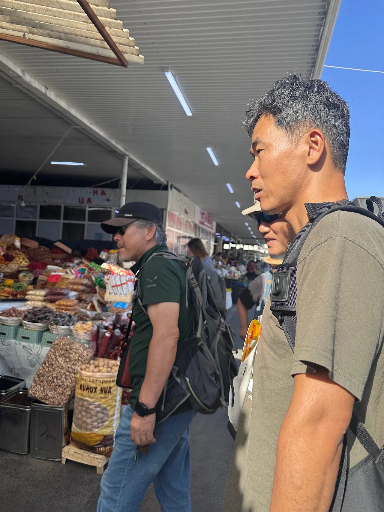 쌀, 계란, 고기, 과일 등의 가격을 살피고는 오쉬 바자르로 향한다.