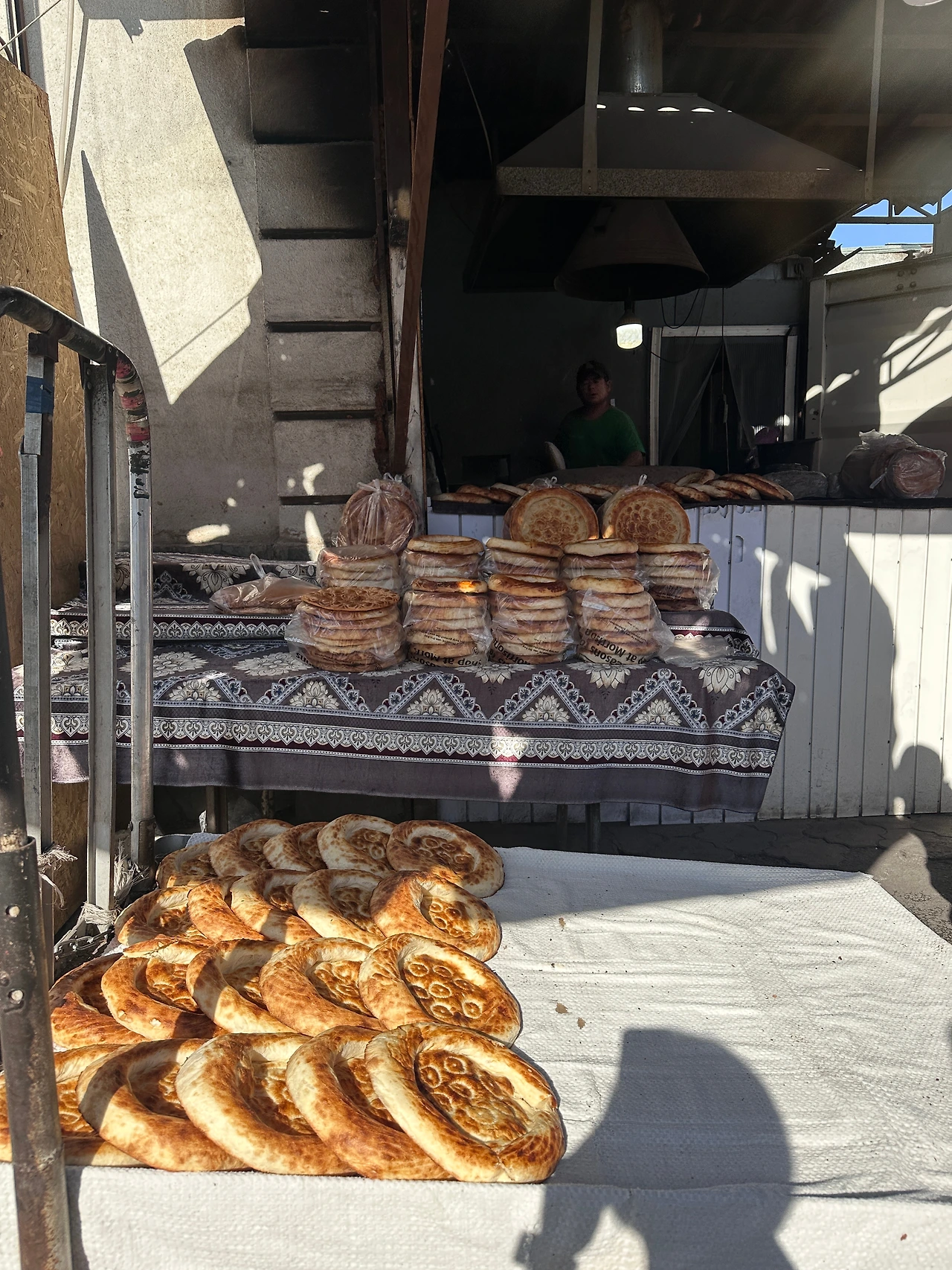 우리의 쌀밥 대신 키르기스스탄 사람들의 주식인 넓은 빵-레표시카는 화덕에 굽는 것이 인상적이다.
