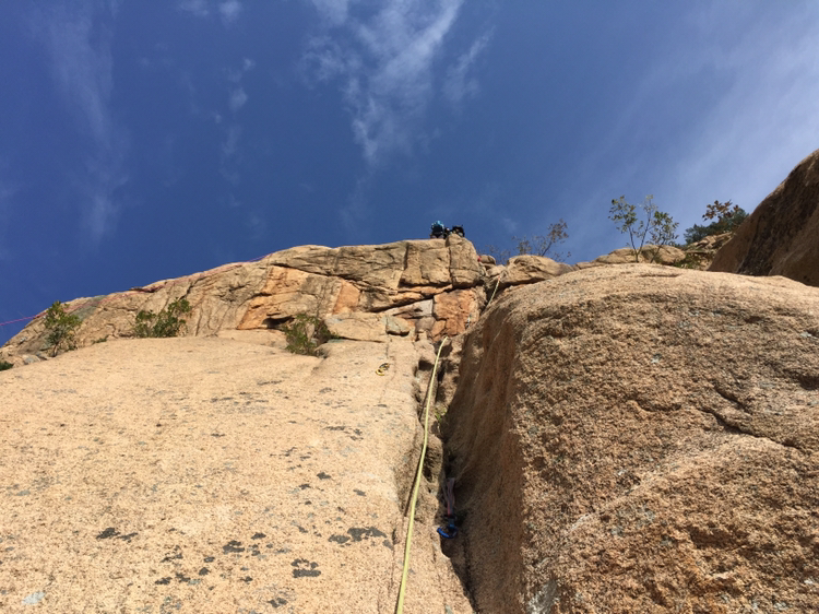 뒷줄을 거는 팔은 후들거려 자꾸 줄을 놓치고 먼 양발 사이는 좀처럼 편하게 딛지를 못하니 크랙에 얼굴에 처박고 한참을 헤매었다.